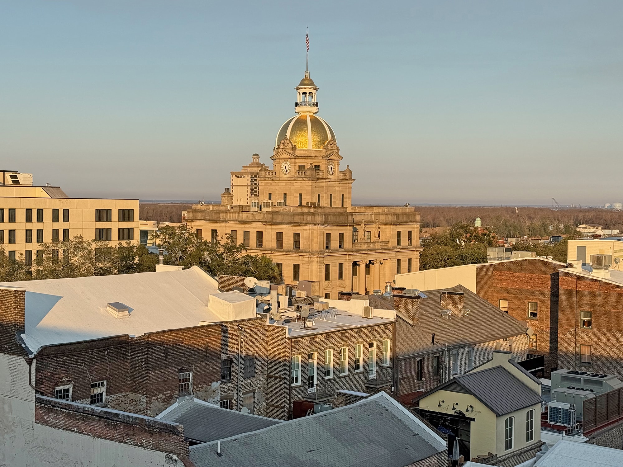 We arrived just after checkin, with leftovers for dinner and a cocktail on the rooftop lounge to catch a beautiful sunset. We look forward to spending four more days in Savannah to learn more history, see more sights, and have more seafood!