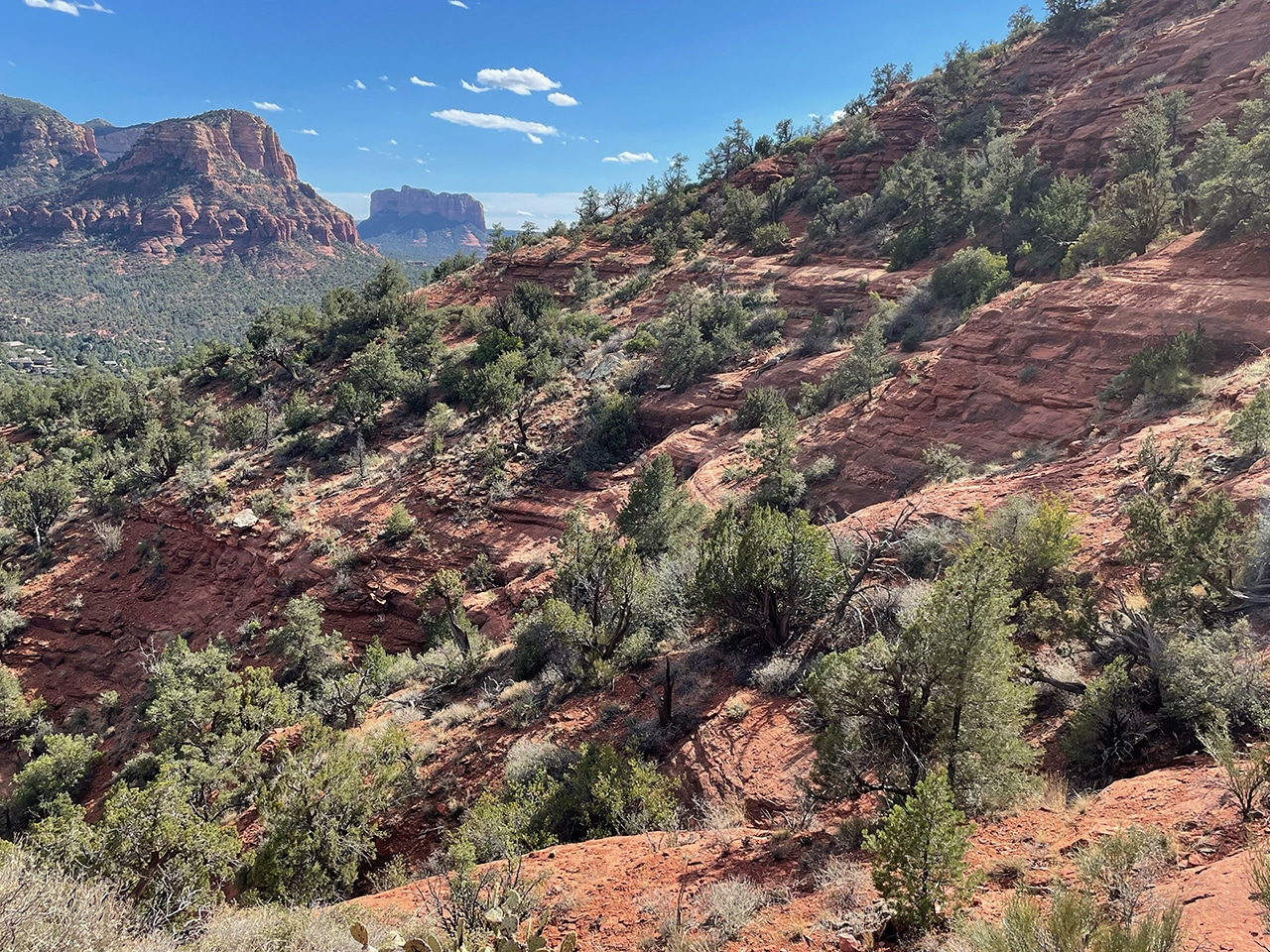 - Magnificent views of prominent red rock formations Capitol Butte (just left of center) and Coffee Pot Rock (to the far right).