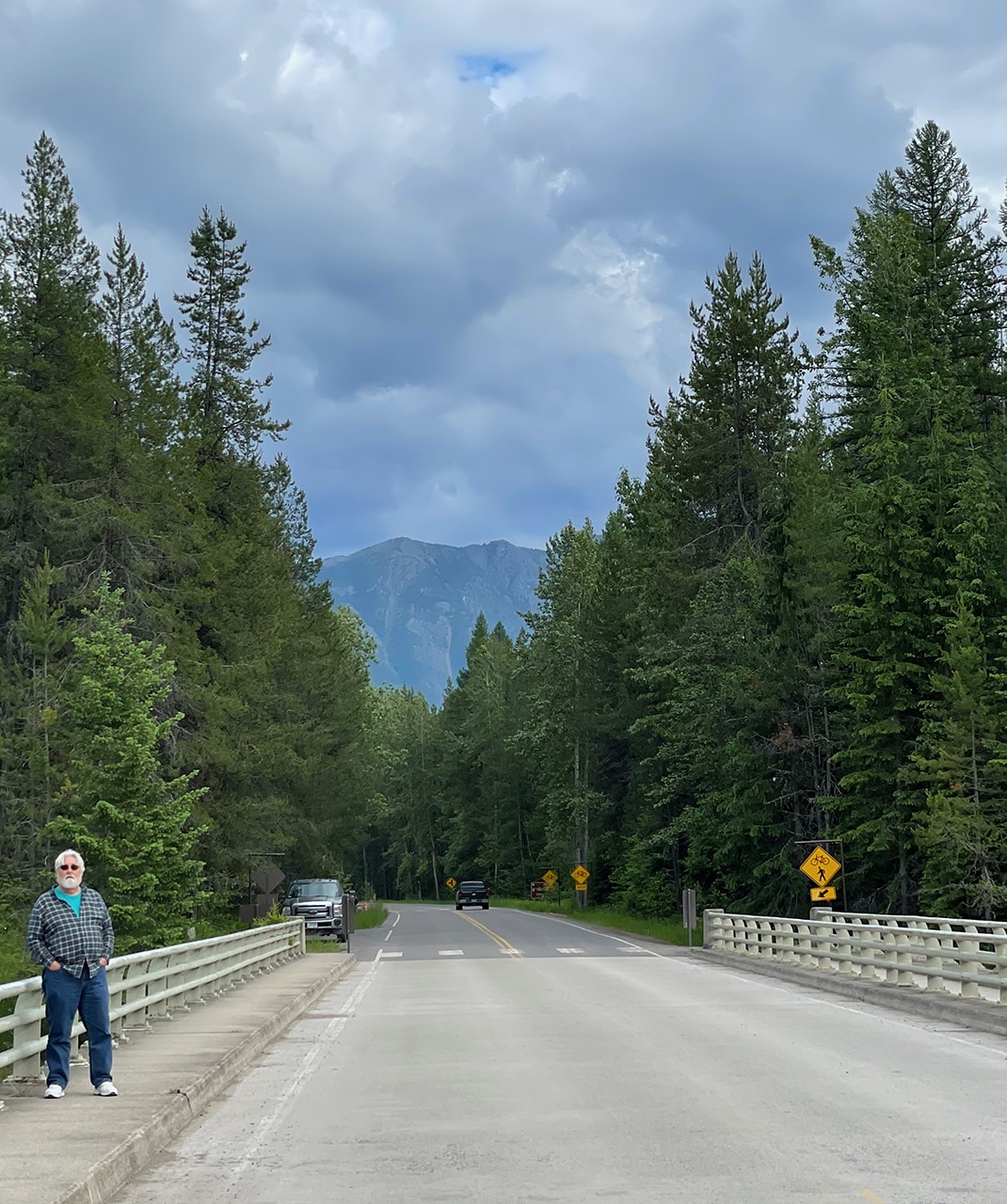 We said goodbye to Glacier National Park (temporarily) and continued on Camas Road till we came to the North Fork Flathead River. The river was so beautiful and standing on the bridge and looking out into the vastness of this place was incredible. We did a 180 to see a mountain that was carpeted in the prettiest color of green I’ve ever seen. A whole lotta swallows must have nests under the bridge, because they were having a field day near the bridge swooping around. The last photo below shows the mountain where we turned around, entered back into Glacier and headed on back to West Glacier.