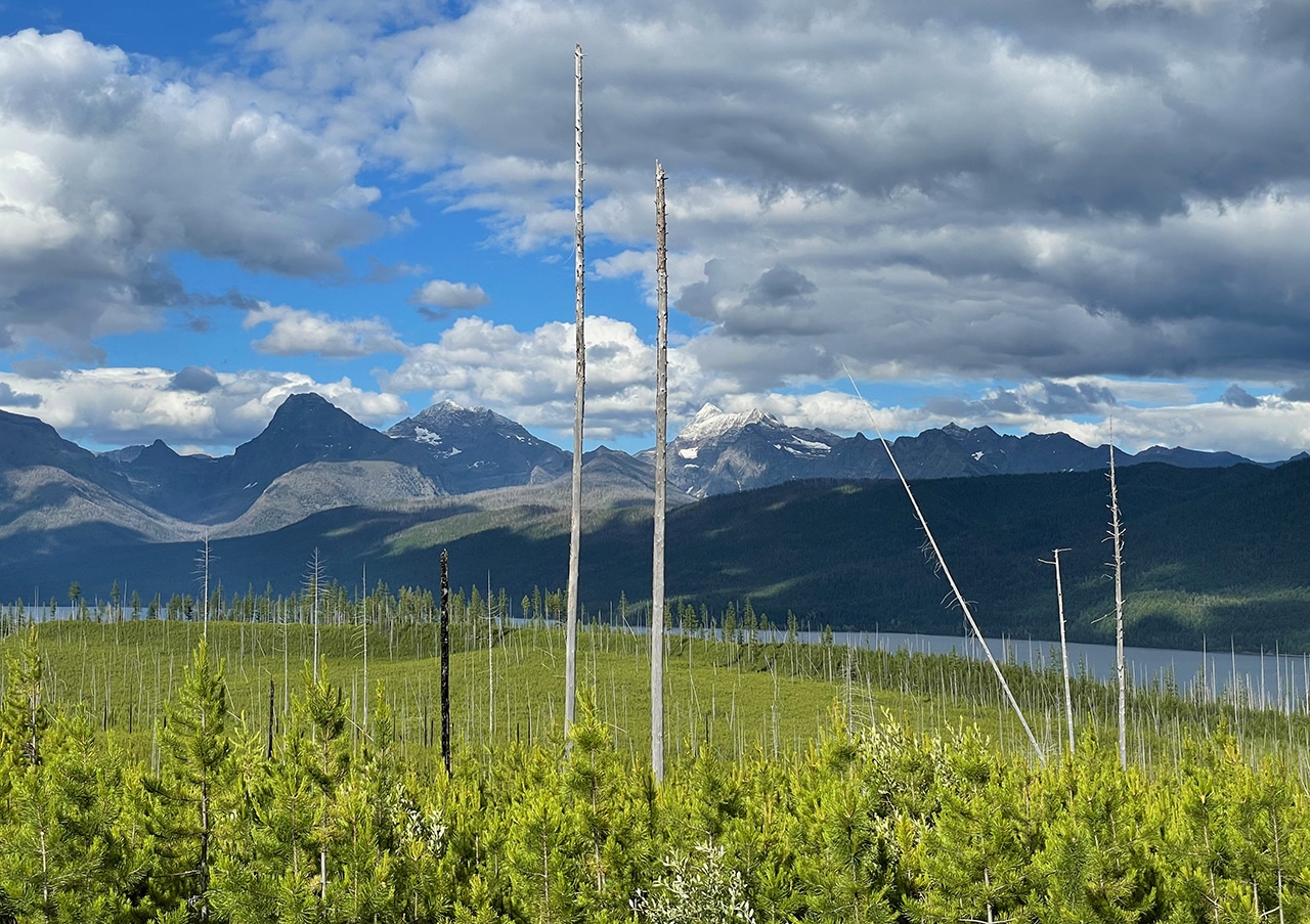 Today was arrival day in West Glacier, and the perfect introduction to Glacier National Park. We checked into our cabin and had the rest of the day to explore the lesser-known area north of Apgar Visitor Center. We traveled up Camas Road to McDonald’s Creek Bridge, McGee’s Meadow, and an old wildfire burn site to see a few of the outstanding parts in this Park.
