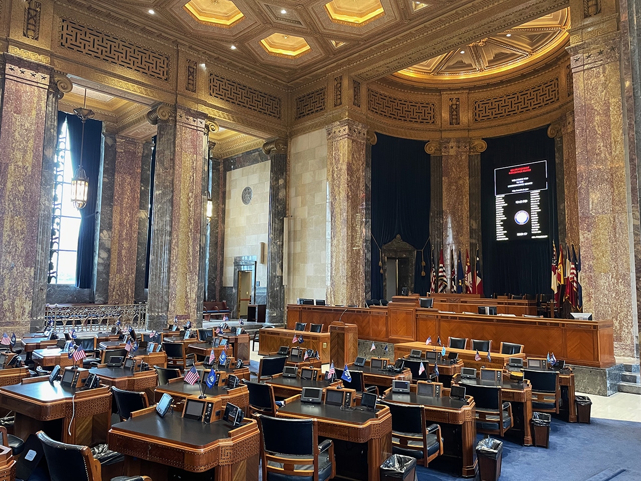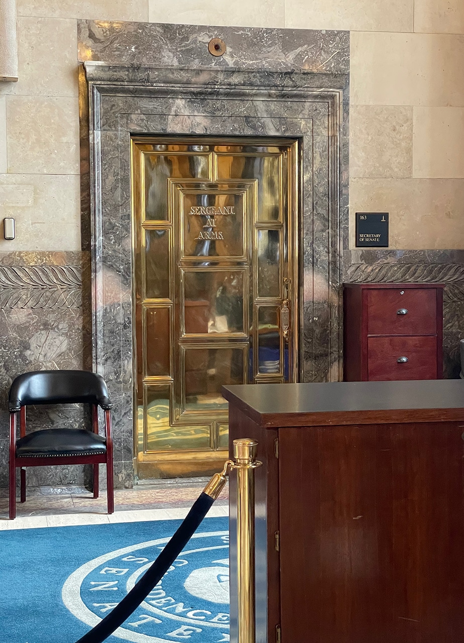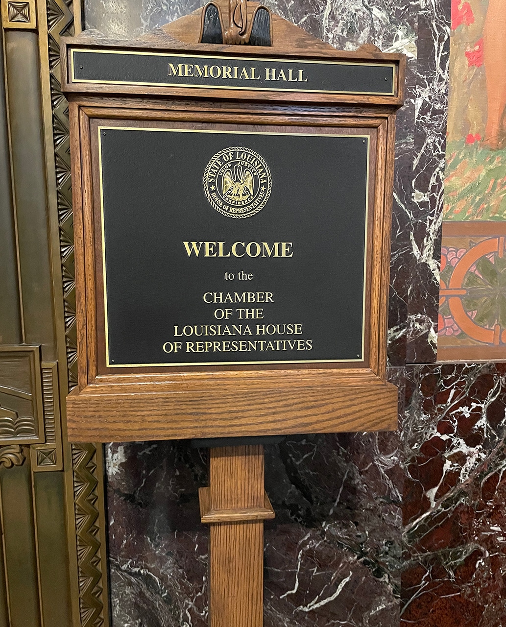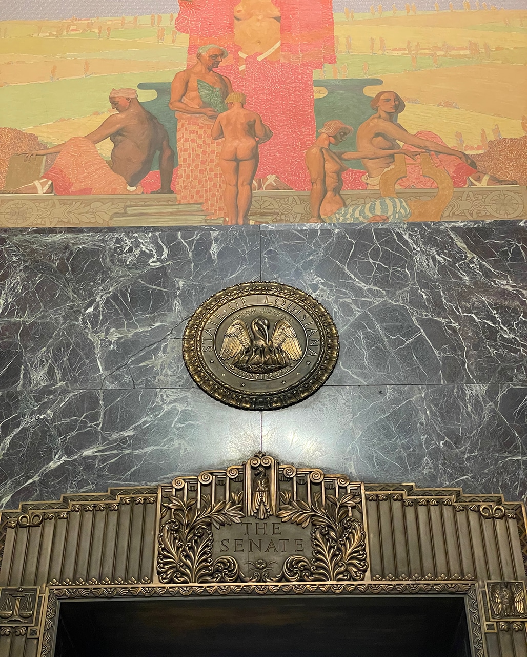 - The Seal of the State of Louisiana over the entrance to the Senate Chamber