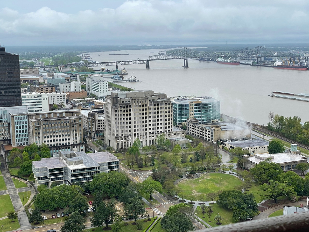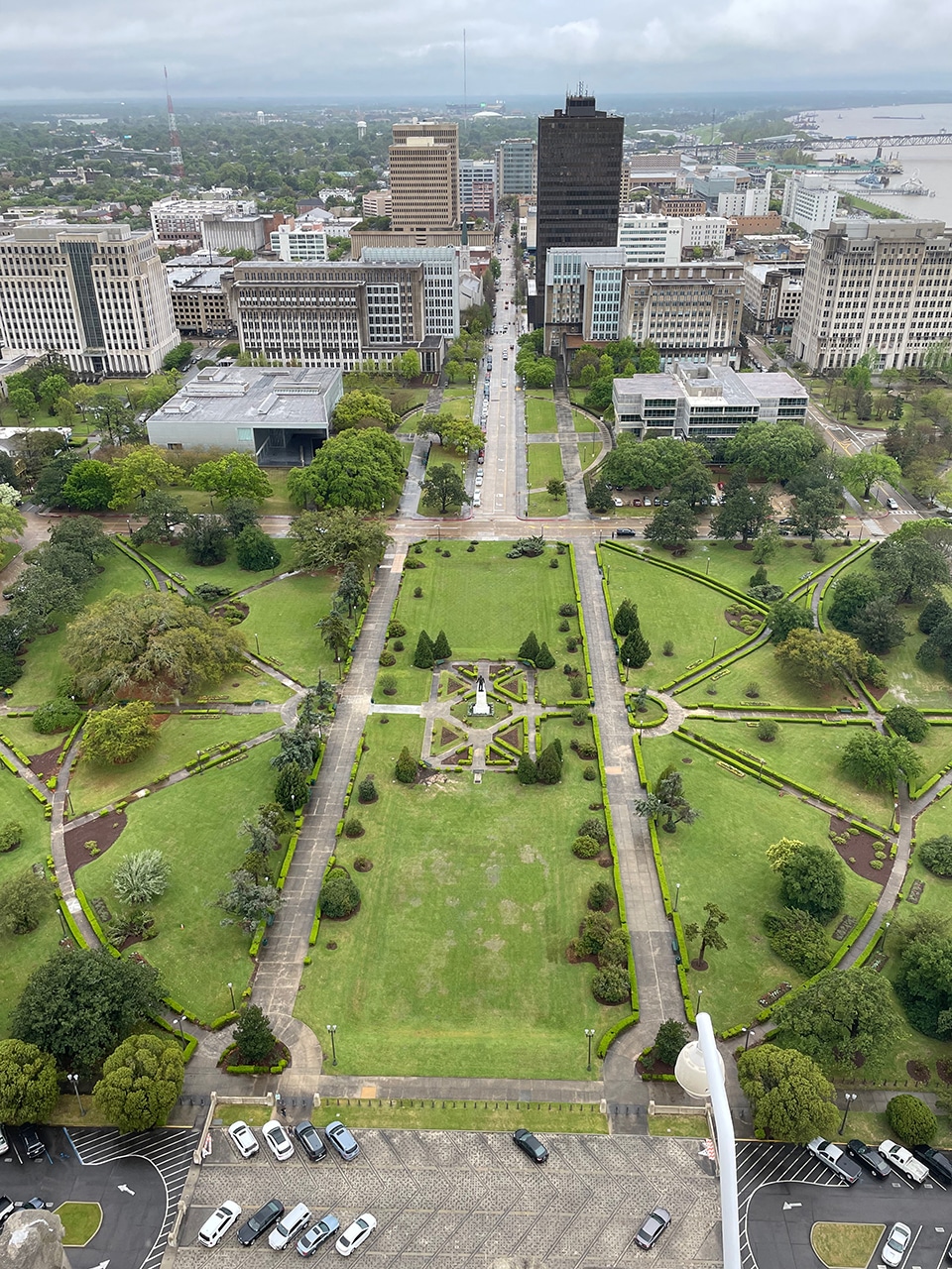 From the observation deck on the 27th floor, there were amazing views of the Mississippi River and the city of Baton Rouge and beyond. The last photo shows the perfectly manicured gardens and Huey Long’s statue looking out over the city. The skies were cloudy and grey, but I was still able to see for miles and miles in all four directions. It was definitely the highlight of my day (so far).
