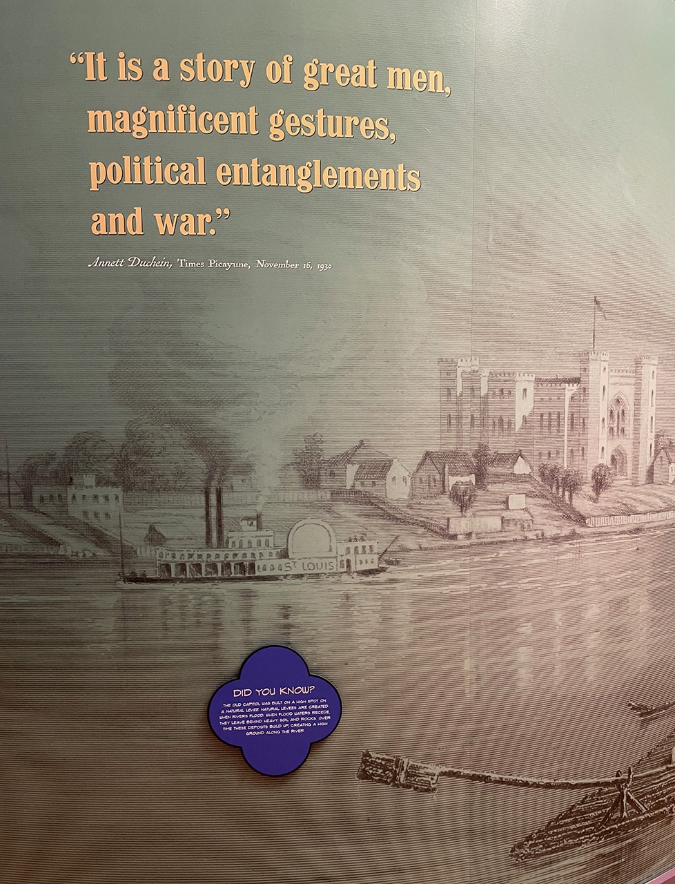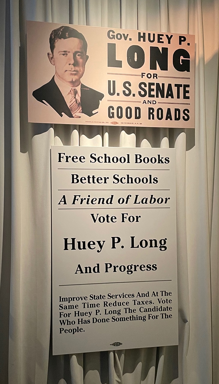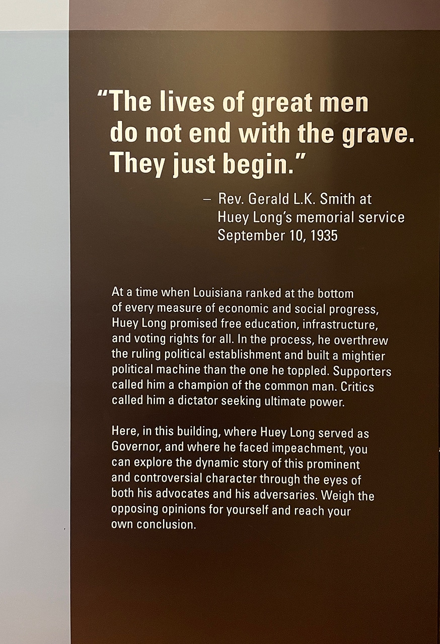And an entire wing was dedicated to Huey Long and his rise and fall from grace. Most people loved the man until he started buying and selling politicians and price-fixing, and just generally bullying his way to get what he wanted.