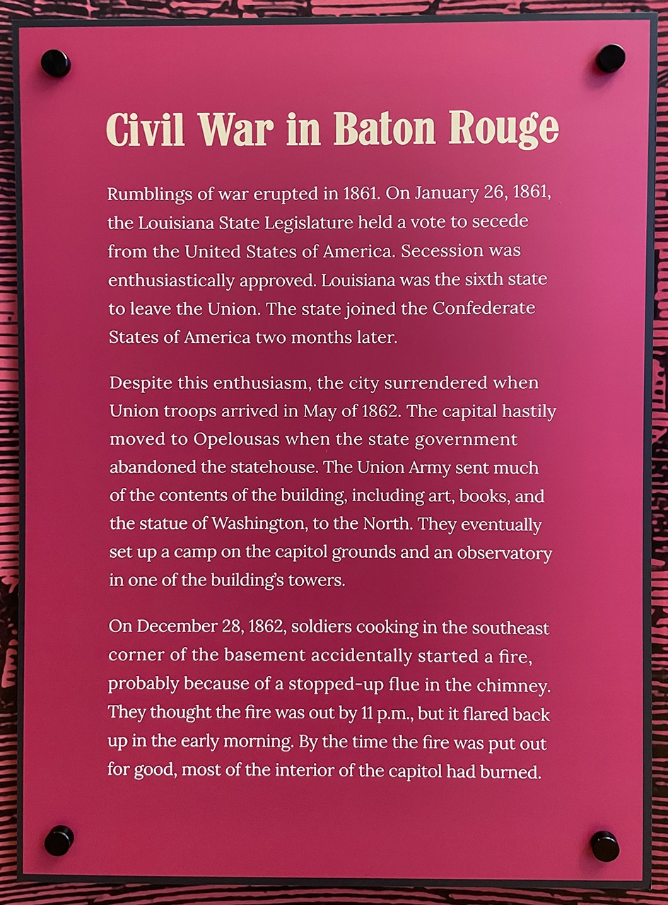 Along with several wonderful displays of how this “Castle on the River” came to be, and how the Civil War changed all that, there were very detailed displays regarding the Plessy vs. Ferguson court case, as well as other monumental cases that changed life as they knew it back then.