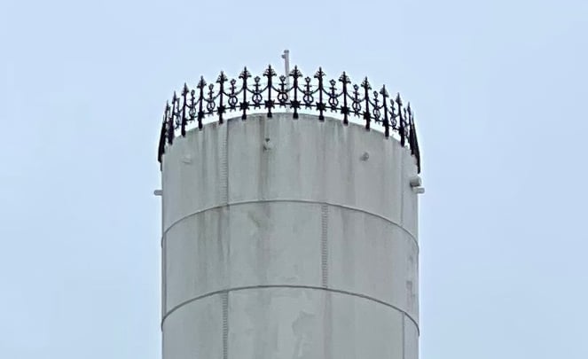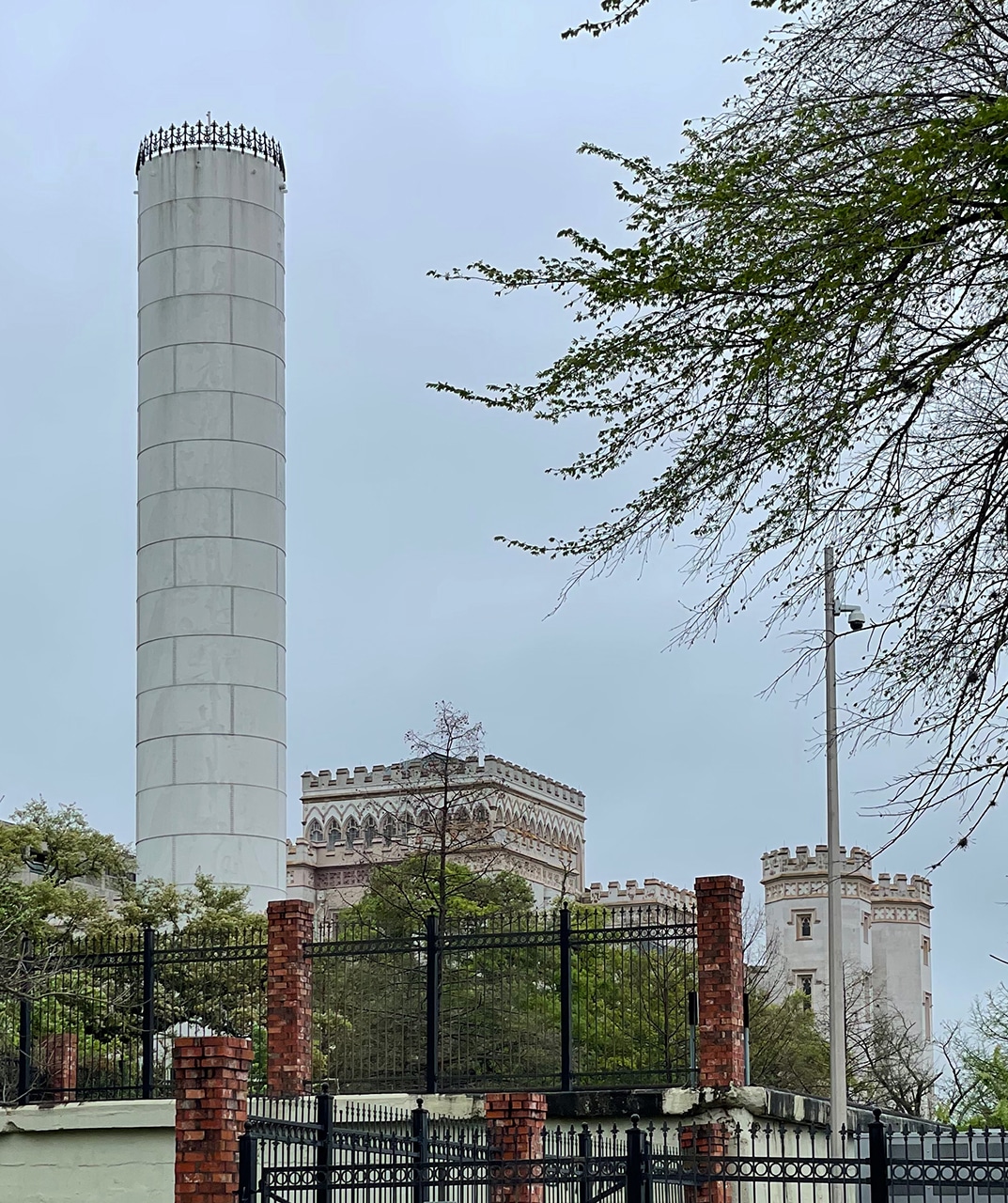 Also in this park was a tower that looked a bit out of place. Although a small plaque read it was listed on the National Register of Historic Places, I couldn’t find any other information about it. It looked almost nautical to me with its rivets and metal exterior, painted a stark white. From a distance, the top of the tower has the same castle-like vibe as the Old Capitol – even though a close-up shows it’s just a small wrought-iron fence.