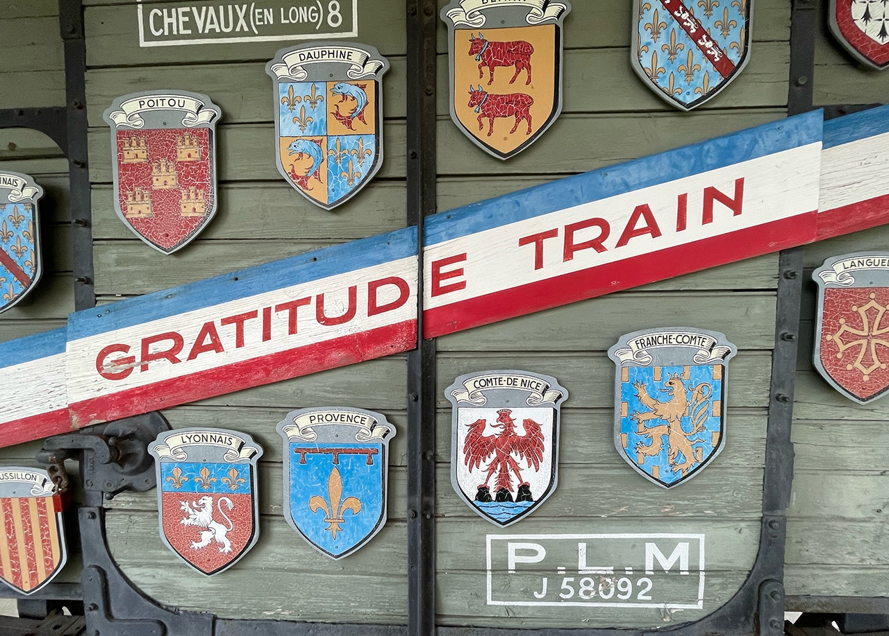After WWII, the U.S. sent 700 boxcars full of relief materials to war-torn Europe. In appreciation, the people of France responded with the Merci Train. Forty-and-eight boxcars filled with gifts were sent to each state in 1949. The cars held gifts collected from the people of France, such as wine, clothing, art, furniture, decoratives, and even thank-you letters from children. ~ READ MORE