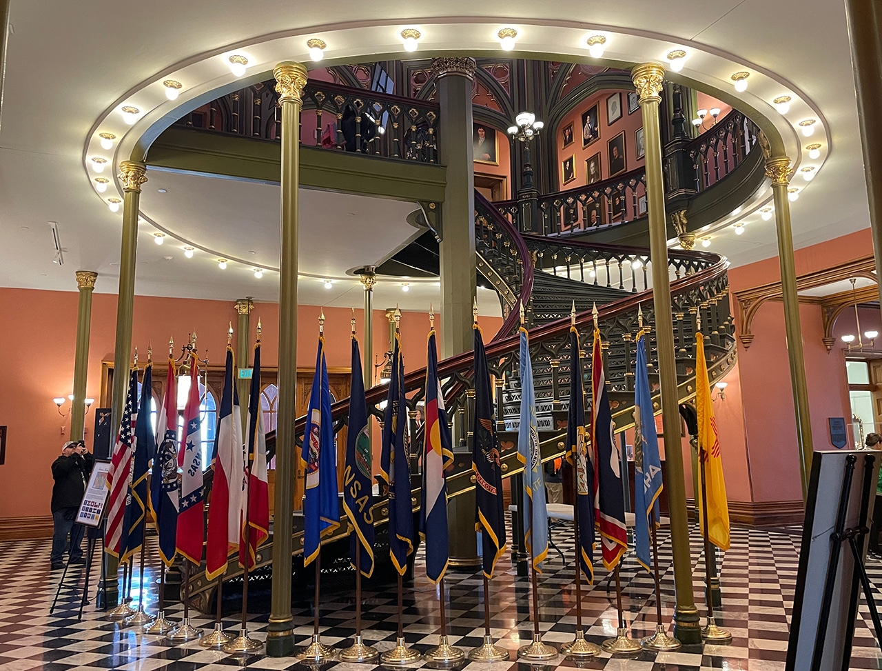 As I headed back, I came upon the OLD State Capitol from the backside and in my quest to find the entrance, I found a sidewalk that encircled the building. That sidewalk offered a great way to get fantastic photos of the outside before I went in. My goal was to get a peek inside to gauge whether Jim would want to return in the morning. It’s actually a pretty fantastic museum with tons of information inside these fabulous castle walls.