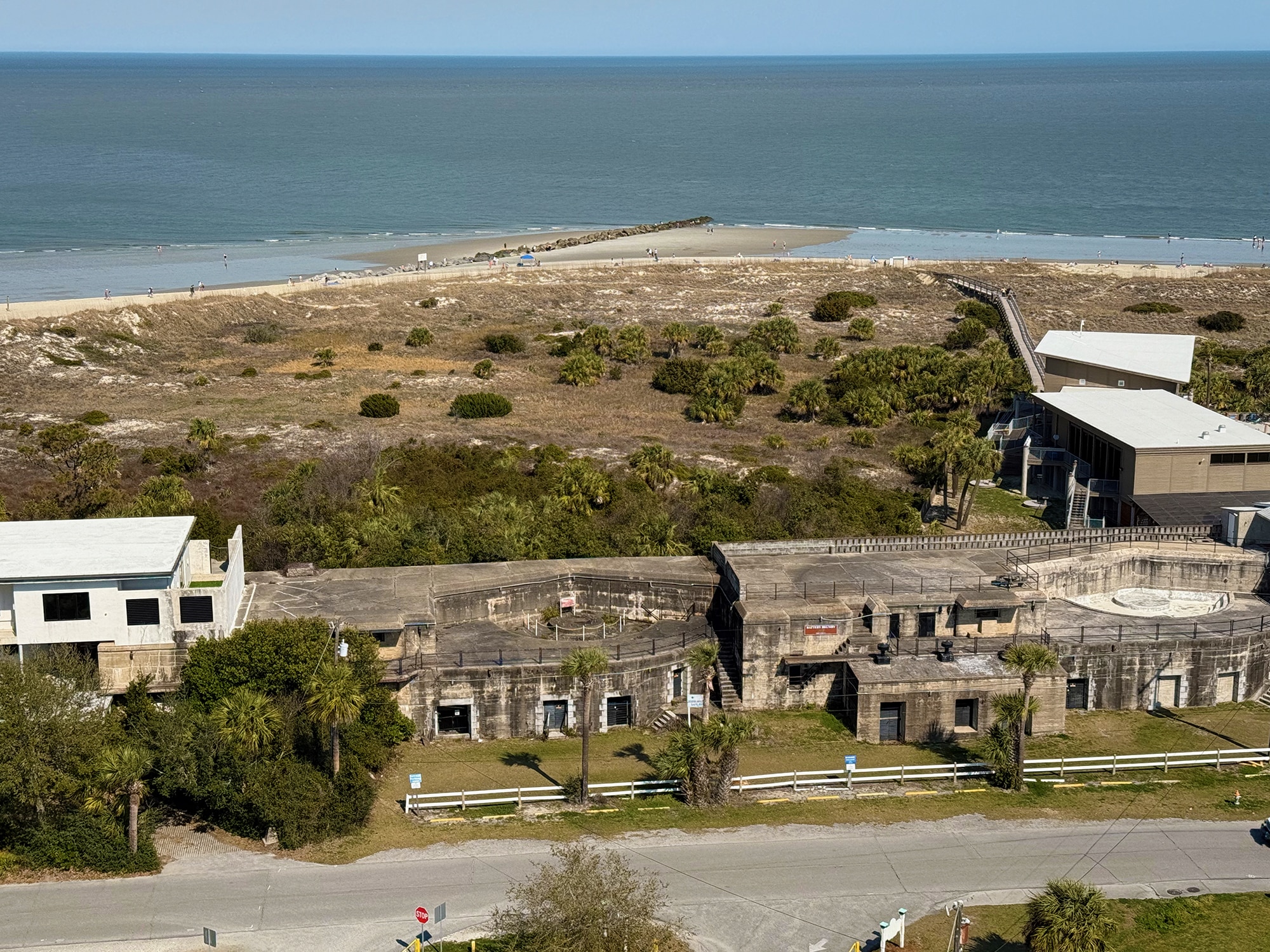 “Located on Tybee Island’s north end, Fort Screven’s Battery Garland served as the gun battery and magazine for a 12-inch long-range gun. The room that formally stored over six hundred-pound projectiles and two hundred-pound bags of gun powder, now serves as the Tybee Island Museum. In 1950, the Tybee Island Museum opened its doors and now exhibits more than 400 years of Tybee Island history.” ~ READ MORE about Fort Screven Historic District