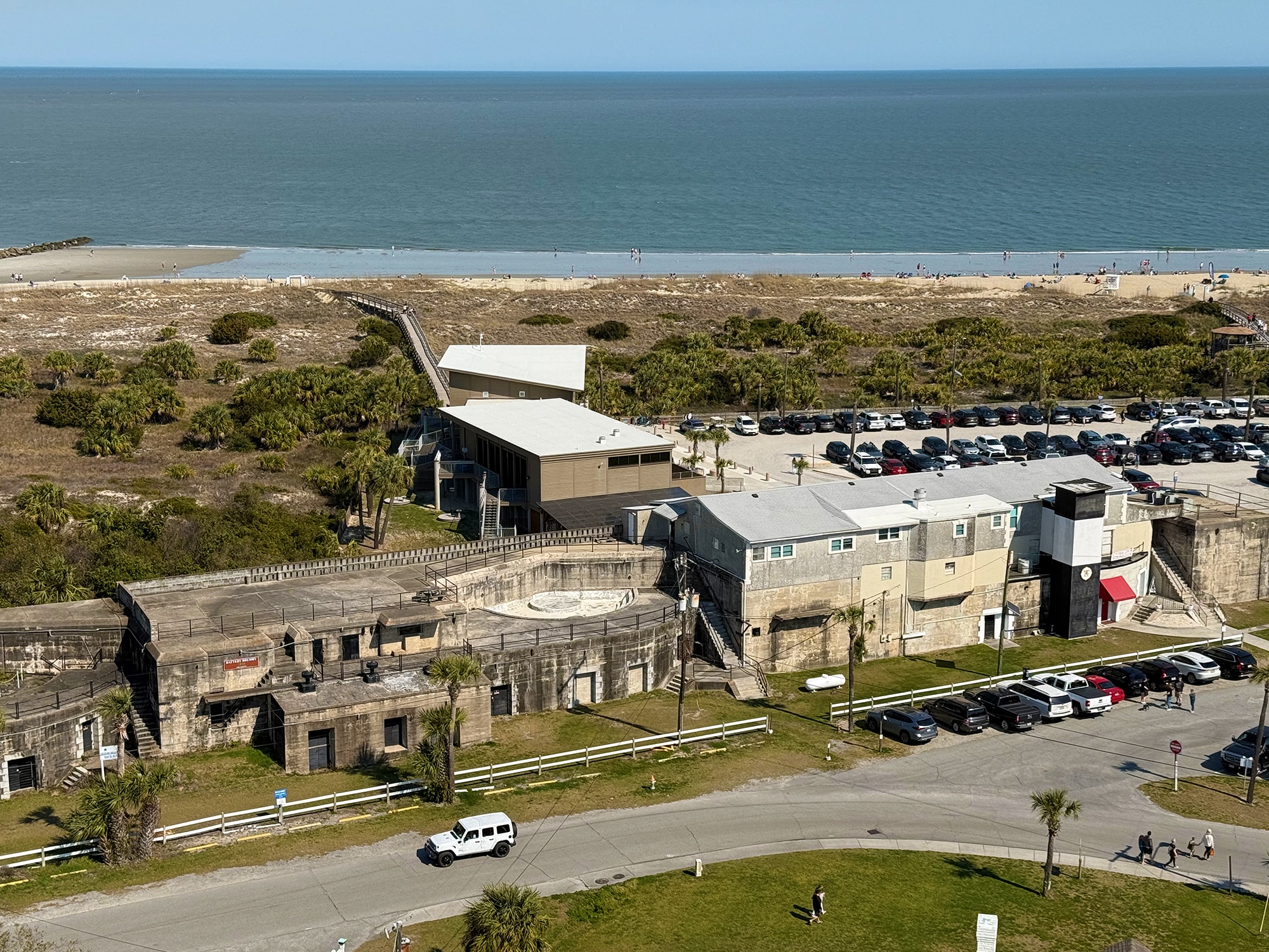 “One theory suggests to effectively hit the Fort walls approximately 1,500 yards distant, Union artillerists had to fire shots at a high angle, thus passing over the 46-foot tower. This strategy, coupled with the short duration of battle could explain why the tower was spared. Soon after war’s end, April 25, 1866, the beacon was relit and painted white for use as a daymark.