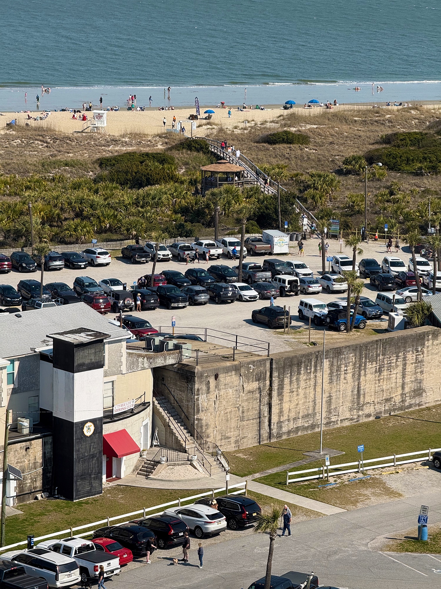 Tybee was trying to accommodate as many travelers to the island as possible by hard surfacing Tybee Road from 14th through 18th streets, from the railroad to the Strand; and parking was provided for 3,000 automobiles total, 1,000 of which would have an ocean view parking space. At the opening of the 1932 season Tybee was the only resort north of Florida that offered oceanfront parking.” ~ from a sign in the museum