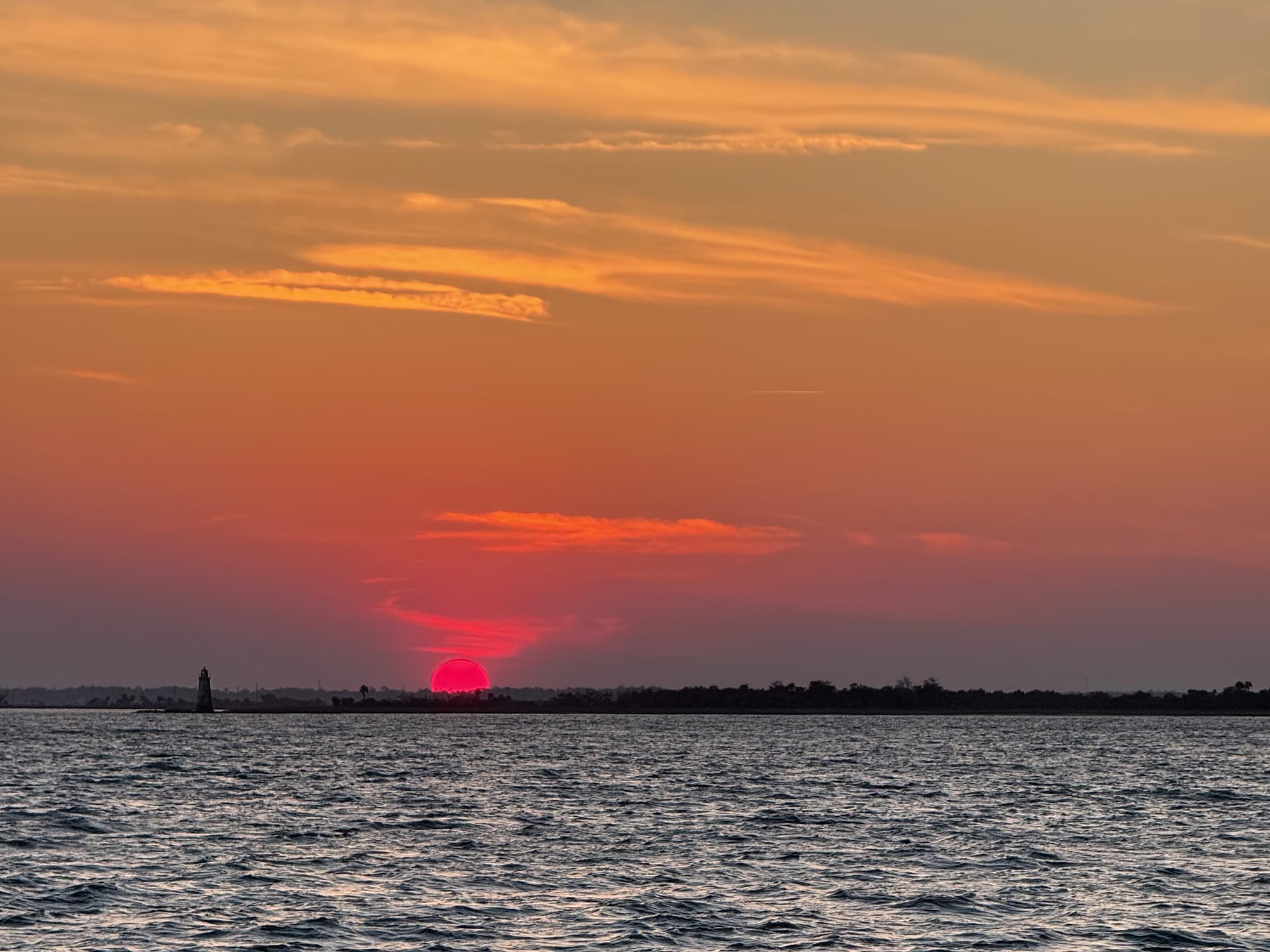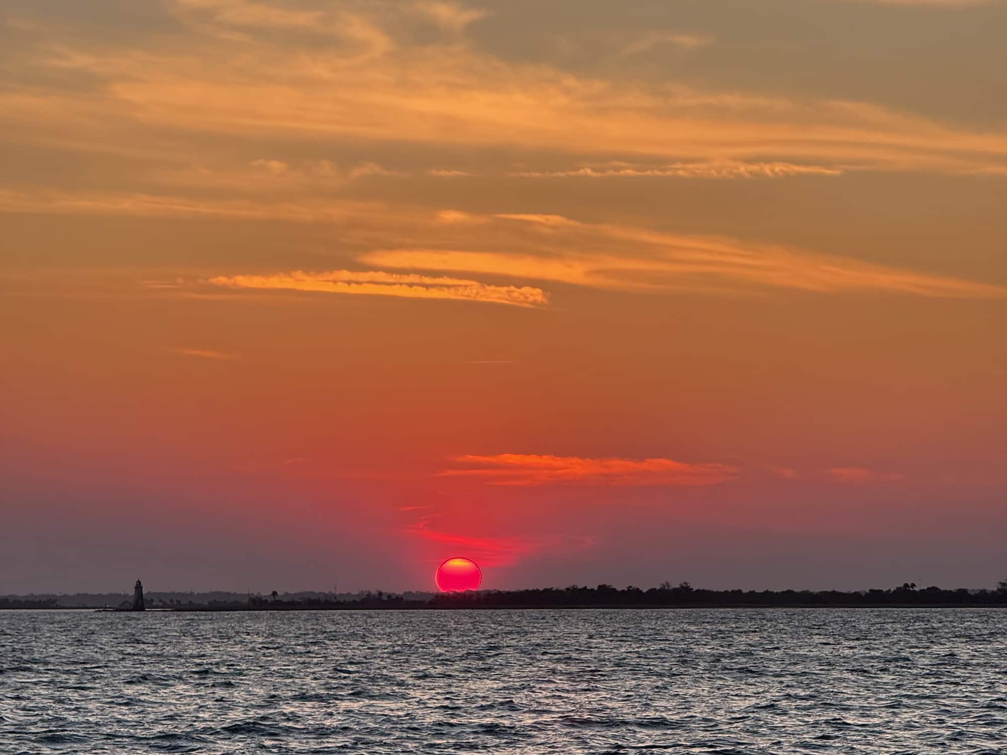 We went out past this lighthouse as the sun was sinking a bit and went almost to the Atlantic in search of dolphins. Although we didn’t see many dolphins, on our return trip the sunset was fantastic and our tour guides were very entertaining. I would do this trip again!