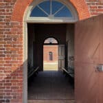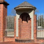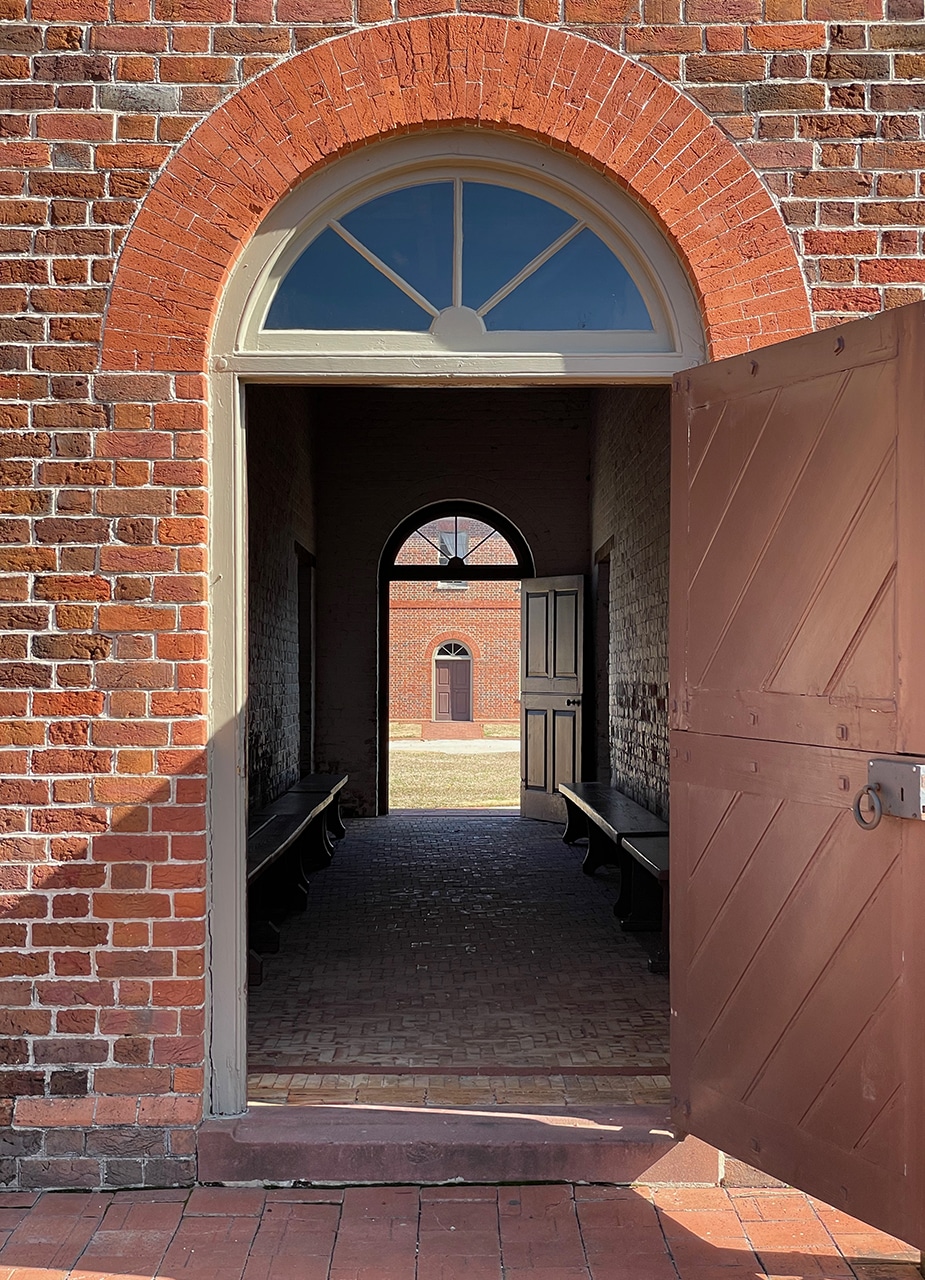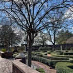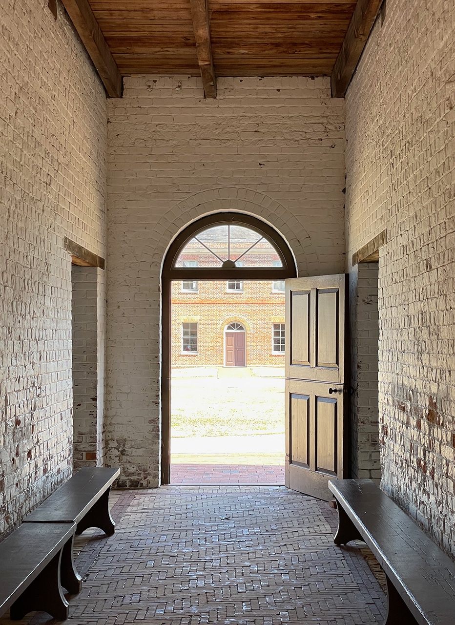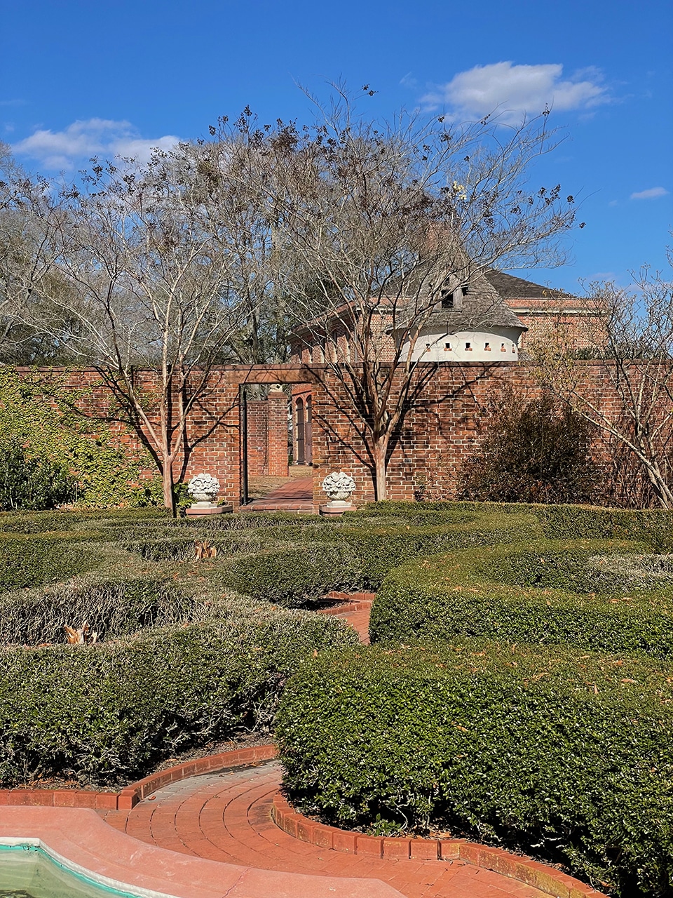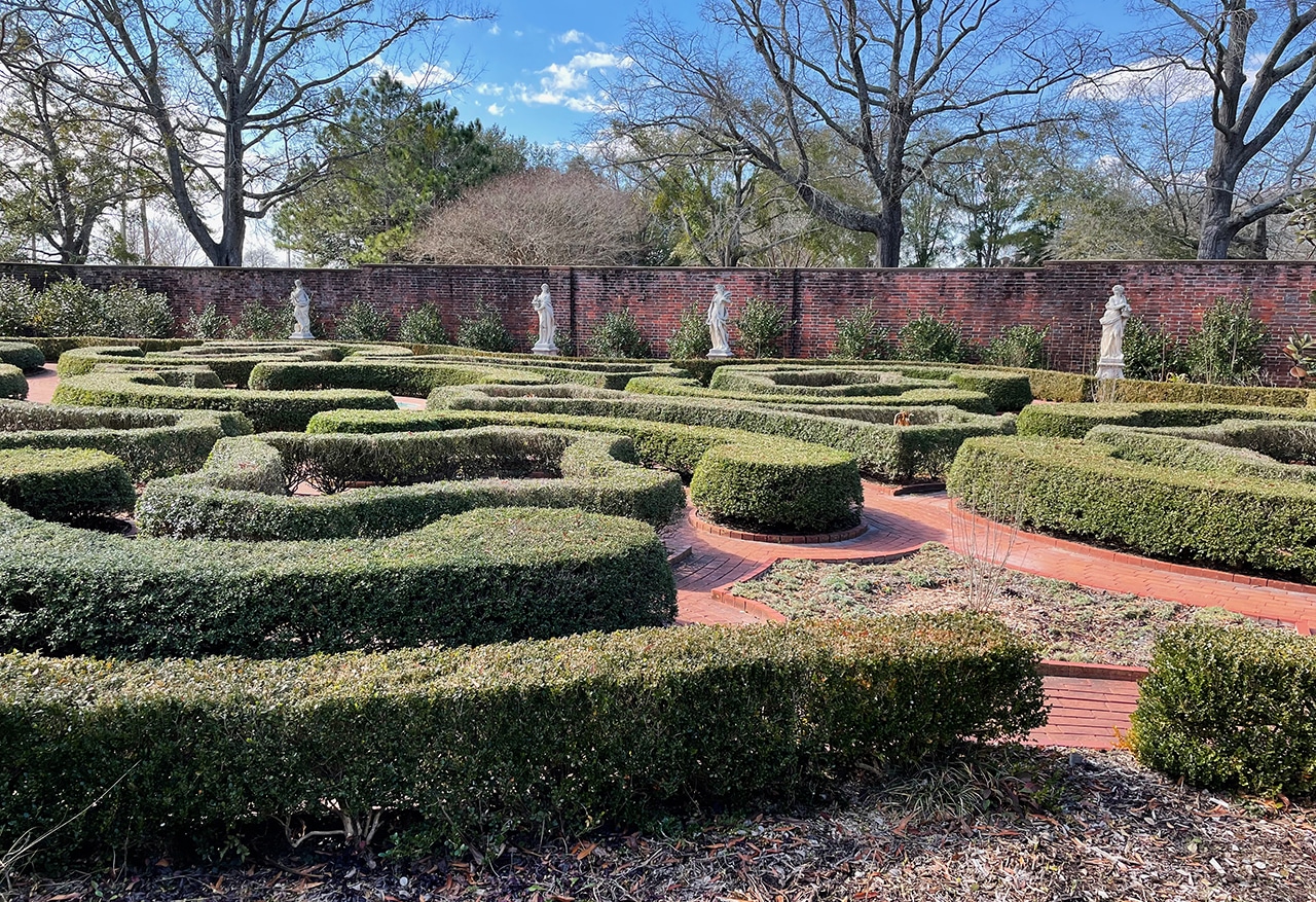 In this area, it was very evident that the Palace today has neighbors – who wouldn’t have been here in William Tryon’s time at the Palace. Although our visit in late January didn’t have much in the way of bounty from the gardens, the red brick buildings were just beautiful. Stakes in the ground indicate which vegetables and herbs are grown when it’s a little warmer.