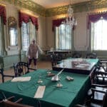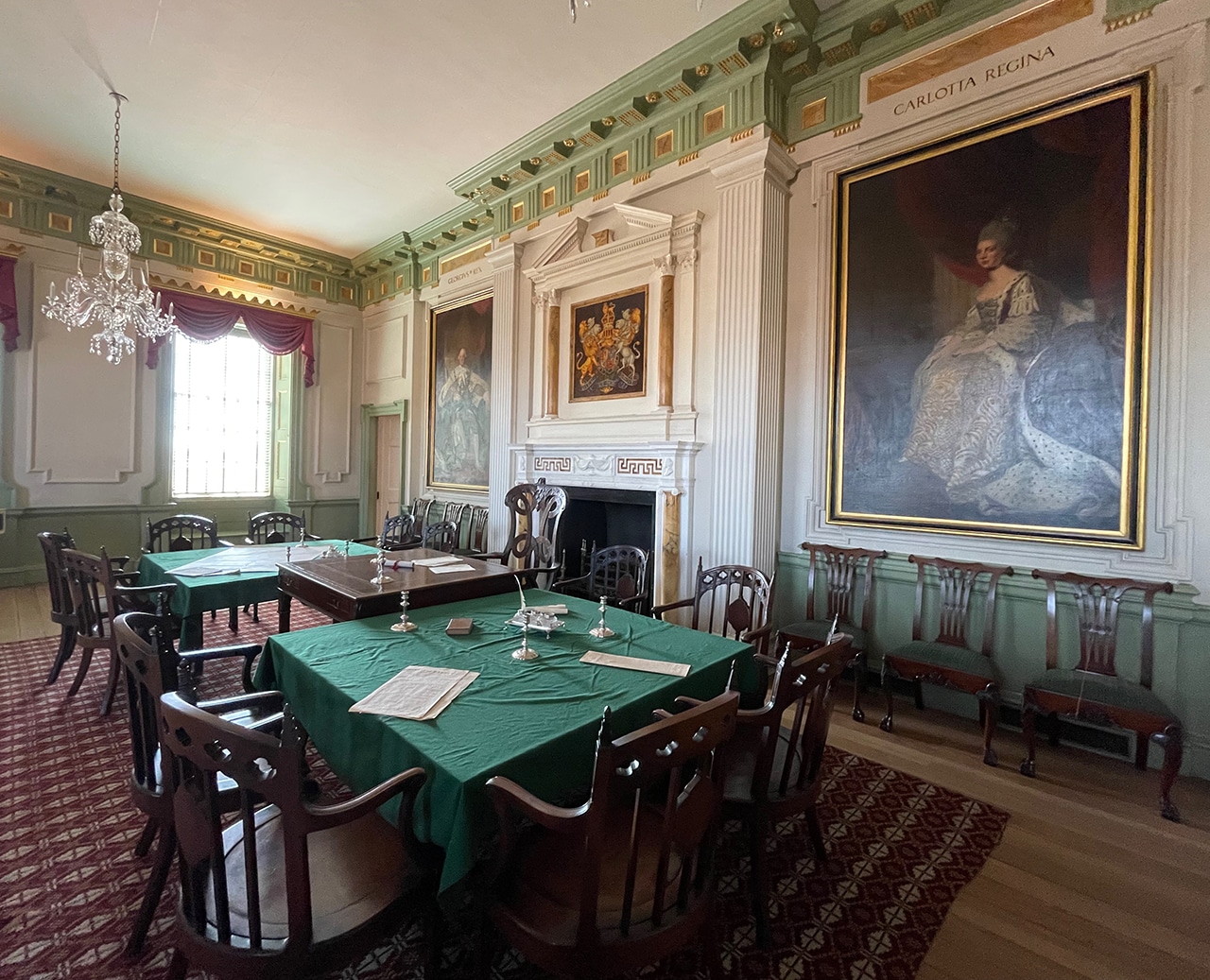 The first room we visited was used by the North Carolina Legislature for governmental business. The governor’s seat was at the center table with portraits of the King and Queen of England over each shoulder to show his power. This room was just beautiful and in looking at the website, the whole Palace is decorated to the nines during the holidays.