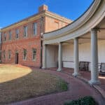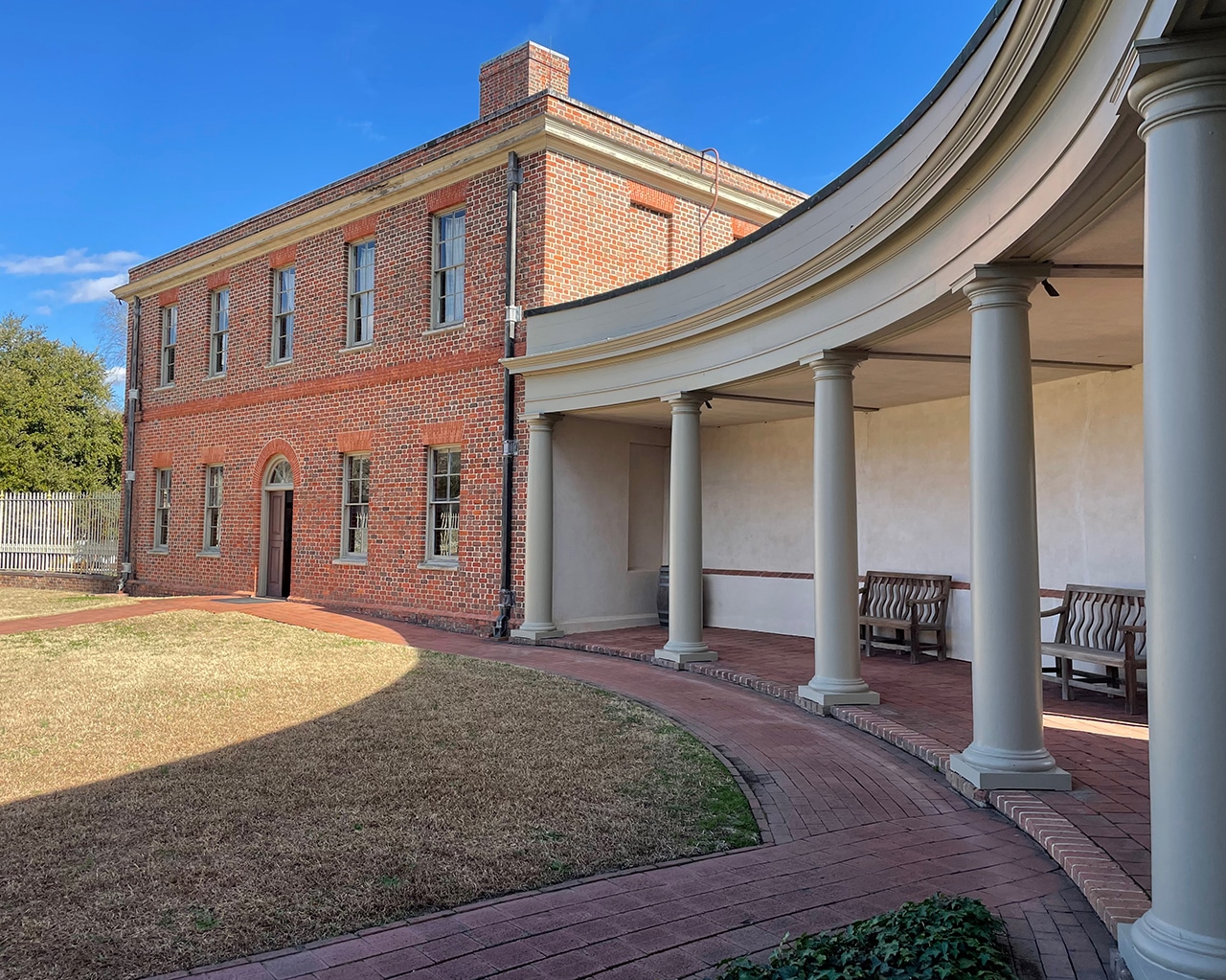 The Daves House (left) was built in 1913 and moved to this location during the reconstruction of the Palace. It became the first visitor center and now serves as a preparation area for brides during weddings held at the Palace. The Dixon House (right) was built in the early 1830s and remains in its original spot. Tours are offered with information about George W. Dixon – a local tailor, merchant, and politician.