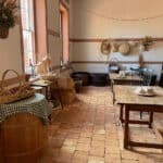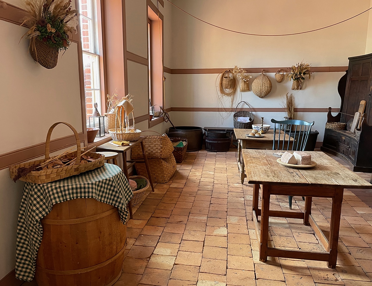 The basement offered living areas for the house servants and several locked storage areas. Only the head butler would have access to those areas since they contained liquor, sugar and other supplies that were in short supply during that time. We emerged and headed off to the Kitchen Office. The kitchen servants lived on the second floor.