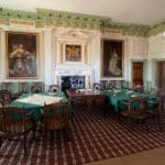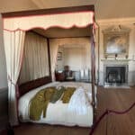 A family crest was posted outside, with another over the front door – just in case we forget whose house this is! Since most of the furnishings burned in the fire, reproduction pieces have been gathered over the years to reflect the time period. It was a very interesting tour – made more so by our very animated and charming tour guide.