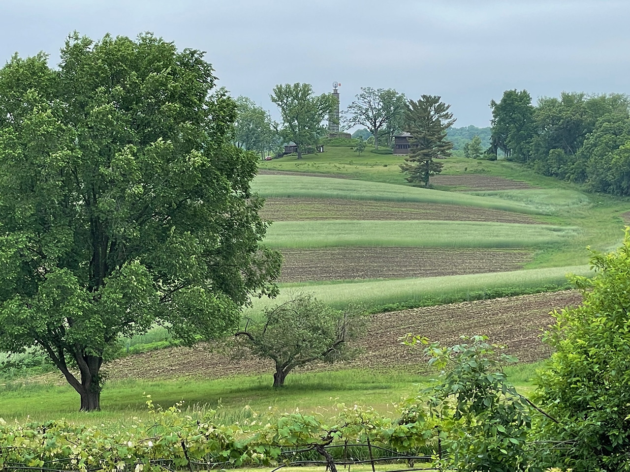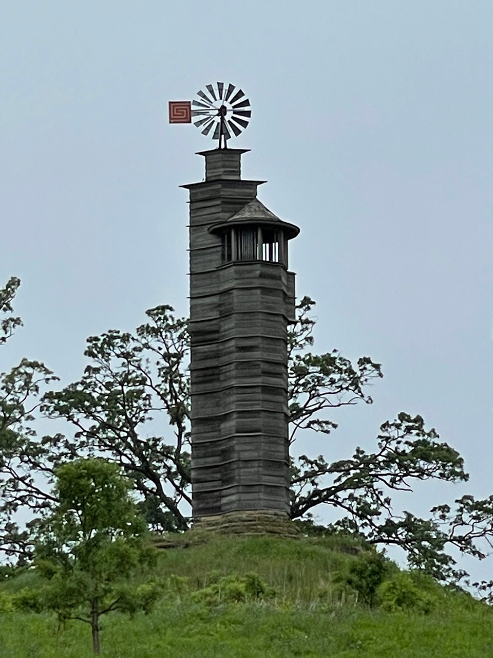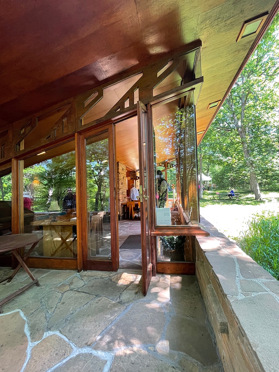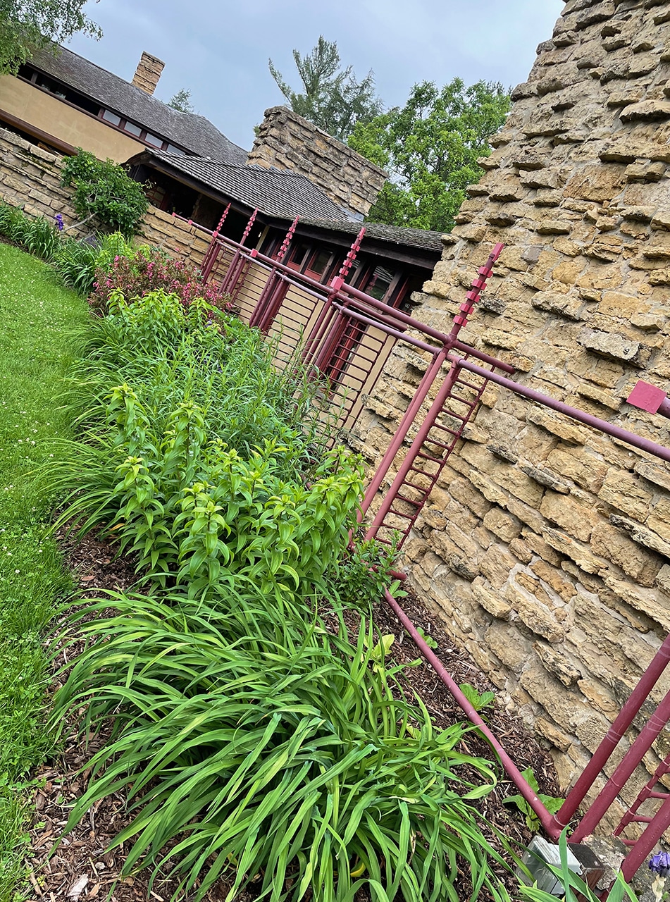As we say goodbye to Taliesin one more time, we see in the distance the Romeo and Juliet Windmill and Tan-y-Deri – Welsh for “Under the oaks”. Wright designed this house for his sister and her family – Jane and Andrew Porter in 1908. Looks like we haven’t seen everything quite yet! This house can be seen on the four-hour Estate Tour!