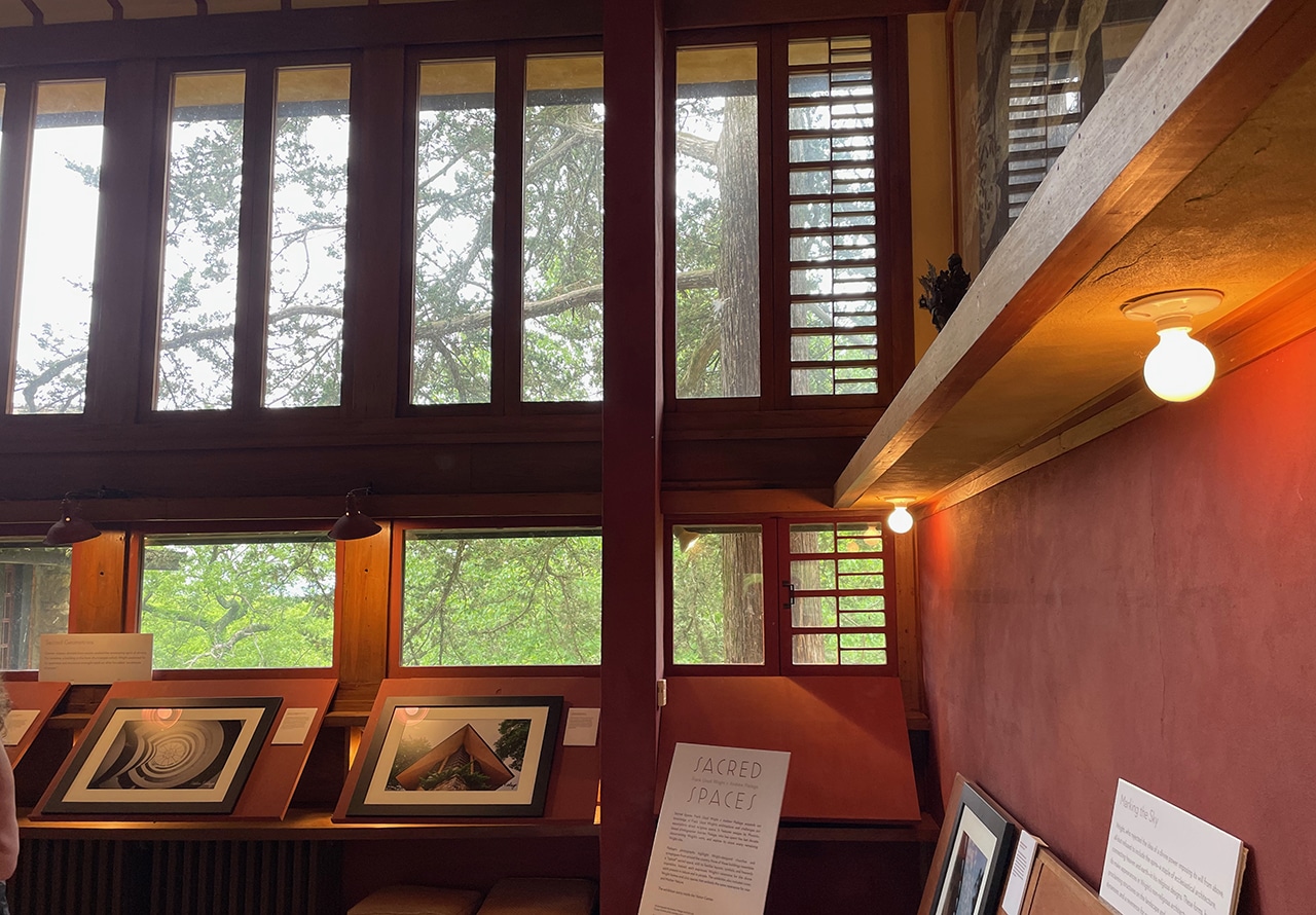 I have to admit, we were originally going to stop here just to see another Frank Lloyd Wright building, but it turns out there was an art show going on called Jennifer Angus: A is for Apple, B is for Bug, and C is for Cicada. We perused for quite a while because this show was fantastic and it looked absolutely fabulous in this setting!