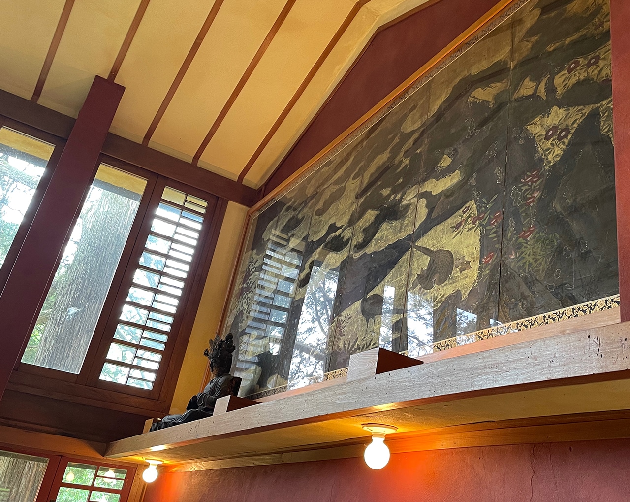 “Following its recent conservation, updated framing and new glazing, the Japanese screen “Pine Tree with Pheasants and Ducks” returns to Frank Lloyd Wright’s Drafting Studio at Taliesin in Spring Green, Wisconsin. A National Historic Landmark that was once Wright’s home and architectural studio, Taliesin houses an extensive collection of works that he purchased throughout his life.