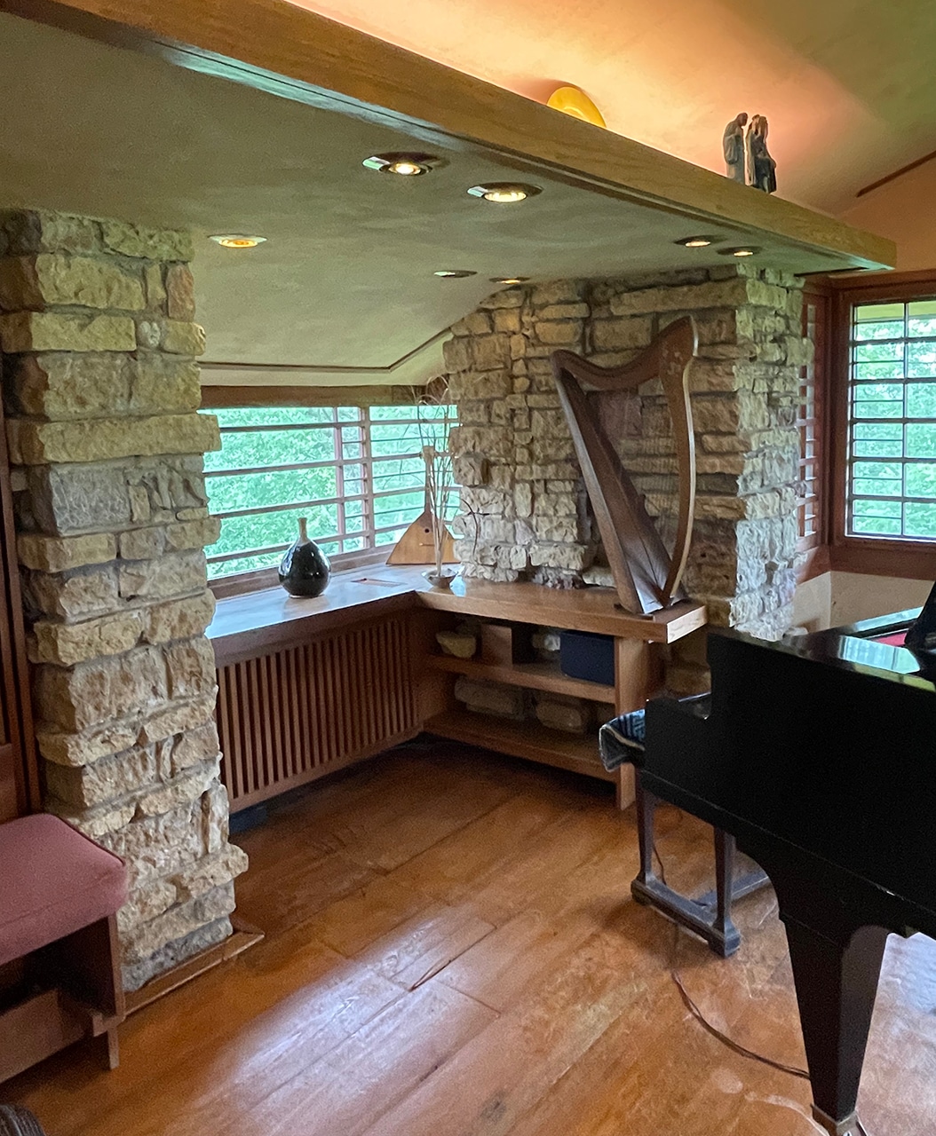 At first Mr. Wright refused Seth Peterson’s request to design a small home on a fabulous heavily wooded piece of property on Mirror Lake, near Wisconsin Dells. After all, he had a lot on his plate – the Guggenheim Museum in New York City, the Marin County Civic Center near San Francisco (just to name a few), as well as designing several private homes.