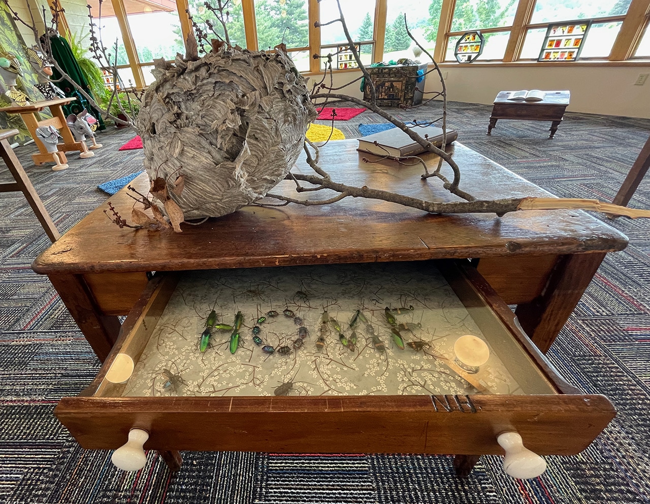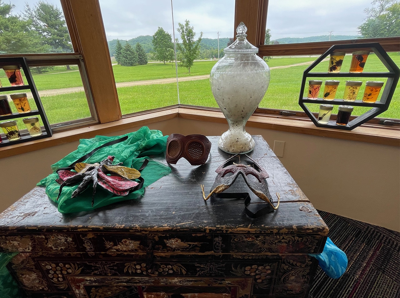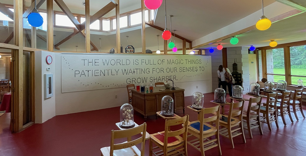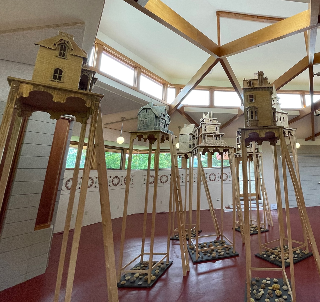 This exhibition was a great opportunity to see this building after its major renovation. Just three miles south of Taliesin in Spring Green, Jennifer’s installation is “educational, interactive, and a perfect fit for this historic school.” She was thrilled to have her first installation in a Frank Lloyd Wright space, and she called it “inspiring.”
