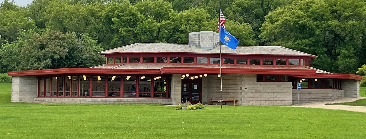 “Built in 1957, the building was designed by Frank Lloyd Wright, who donated his design and 2 acres of land to the Wyoming School District in honor of his mother, Anna Lloyd-Jones Wright. She had been a kindergarten teacher and encouraged his lifelong love of learning.