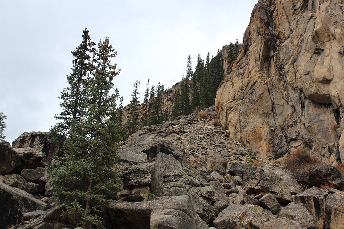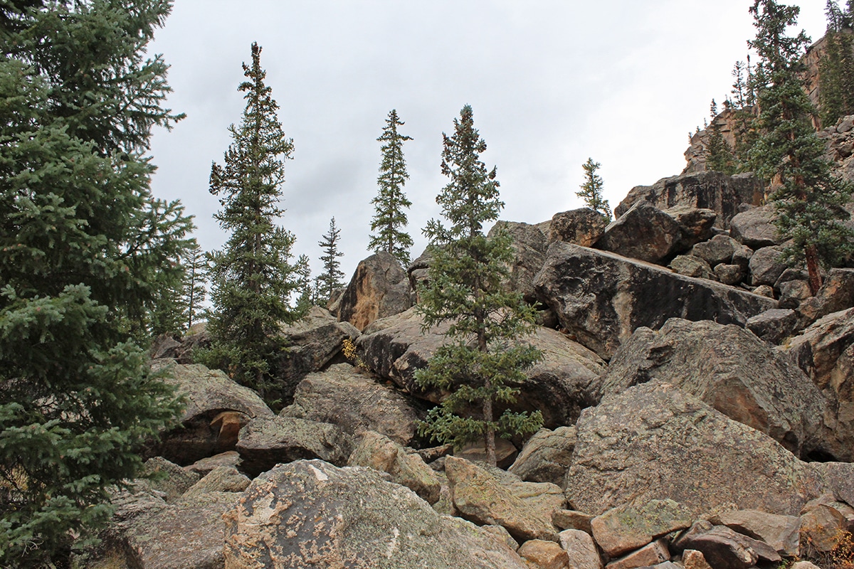 The pictures below were taken on the road to Independence Pass. We stopped along the road at a turnout to snap a few pictures. I just love the way the trees seem to be growing out of the rocks. We had gotten a late start and turned around before the Pass because we were going to get up a little earlier and head that way the next day. It ended up snowing that night and the Pass was closed the next morning. That was the one day we thought might work out according to our phone weather-apps and we were both headed back to the Midwest the day after. Oh well…