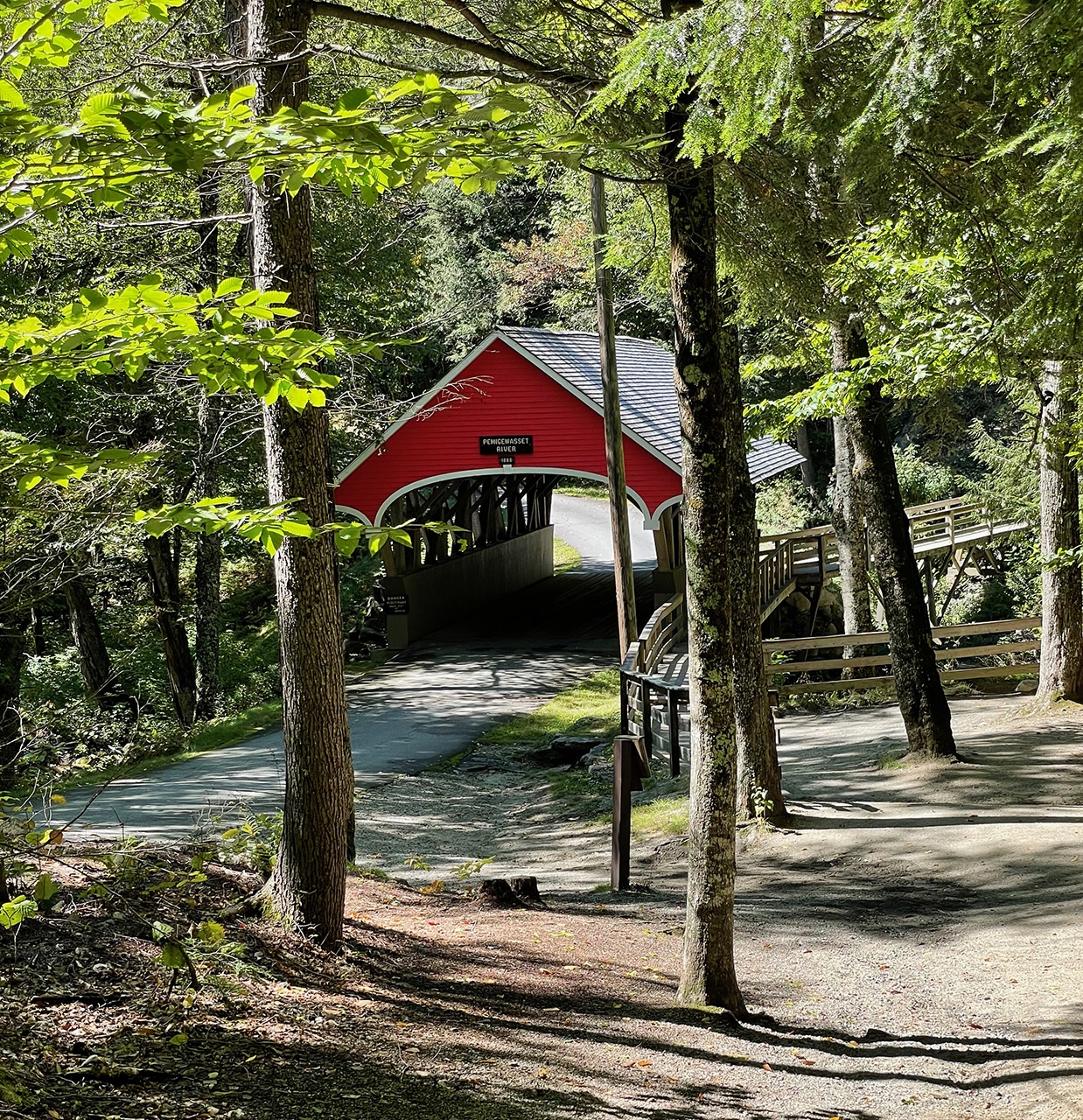 This post is pretty much a combination of all things New Hampshire in one fantastic day! There were babbling brooks, wow–worthy waterfalls, and tree-covered mountains with glorious views. There were walks in the woods, two covered bridges, and a stop at one of our favorite breweries.
