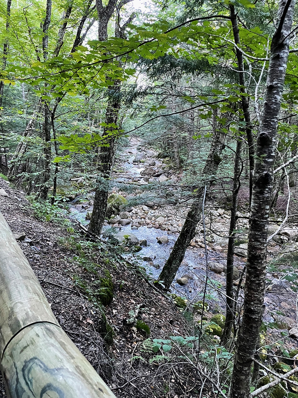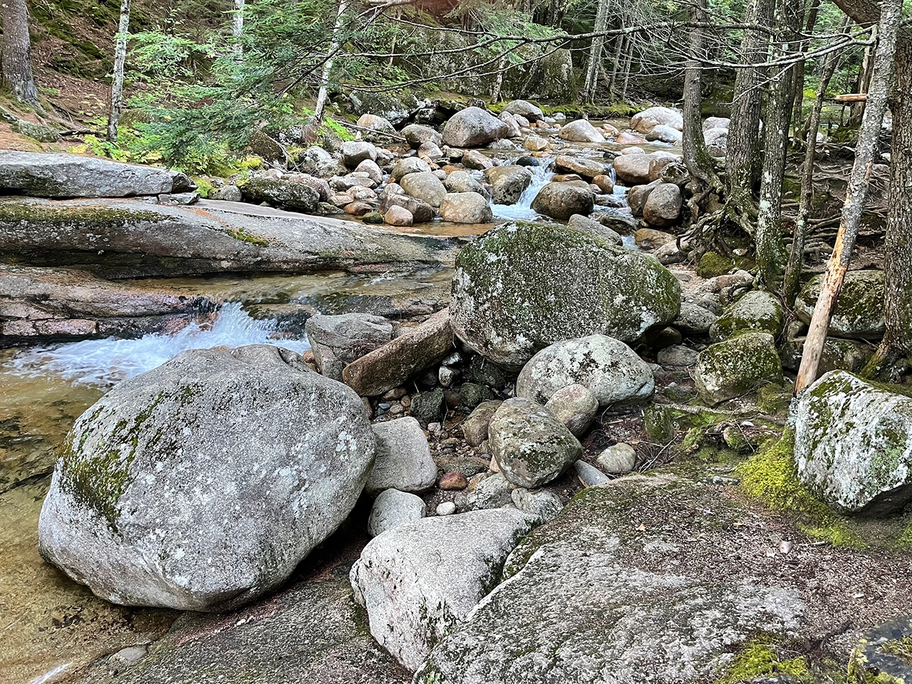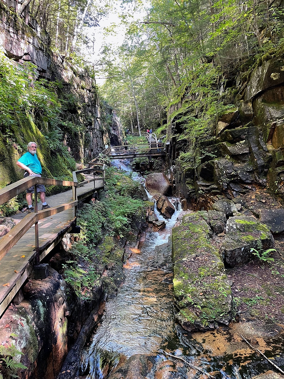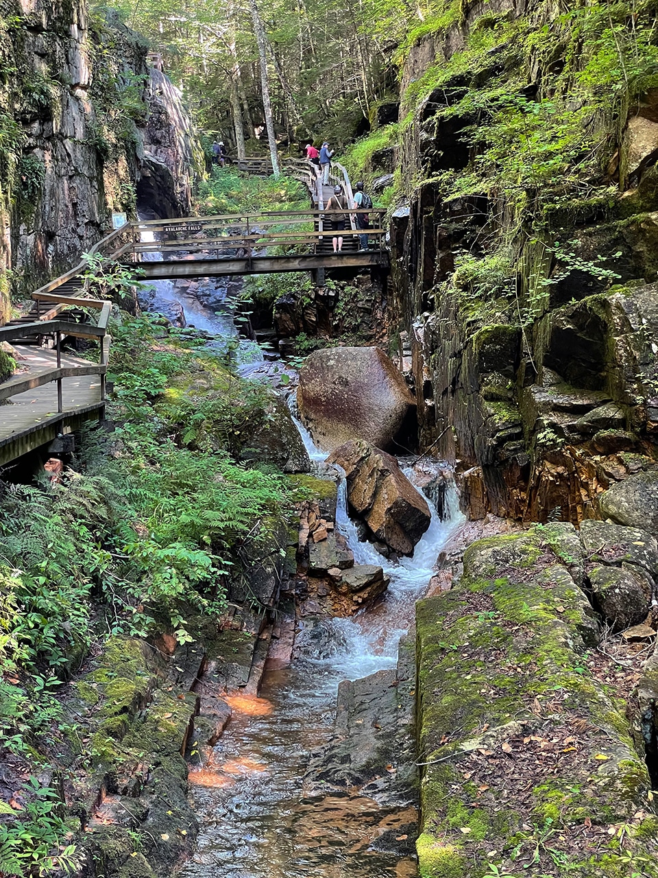 “Beneath this point in the Pemigewasset River is a deep basin. Formed at the time of the ice sheet 25,000 years ago by a silt-laden stream flowing from the glacier. The cliffs surrounding The Pool are 80 feet high, the bowl is 150 feet in diameter, and 40 feet deep.” ~ from a sign nearby