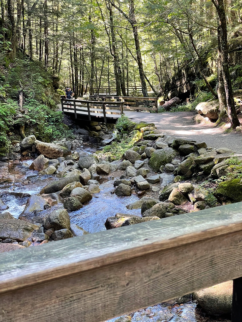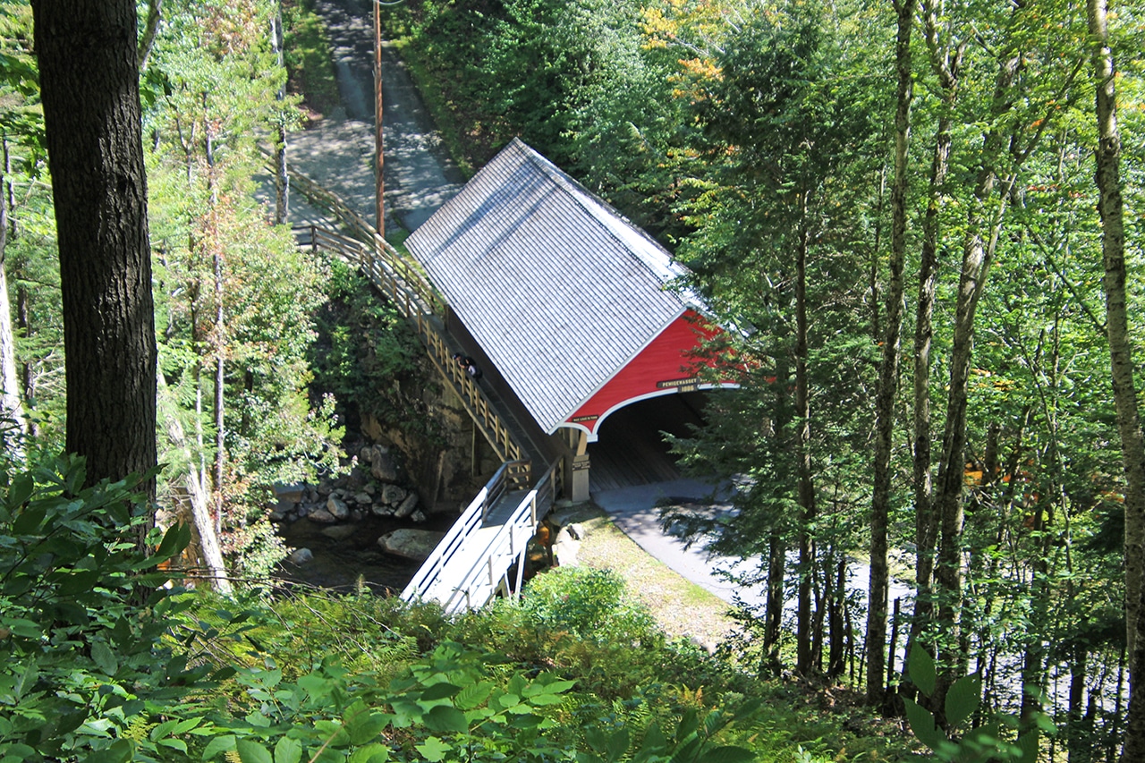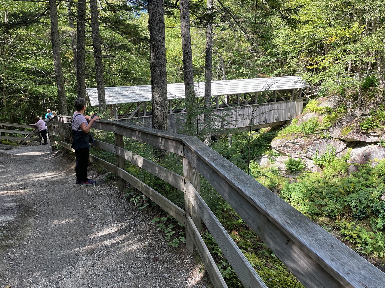 The first stop on the loop is the Pemigewasset River Covered Bridge which was built in 1871. Also called the Flume Bridge, it’s only used by maintenance vehicles and pedestrians. There is a small walkway along one side of the bridge for better views of the river.