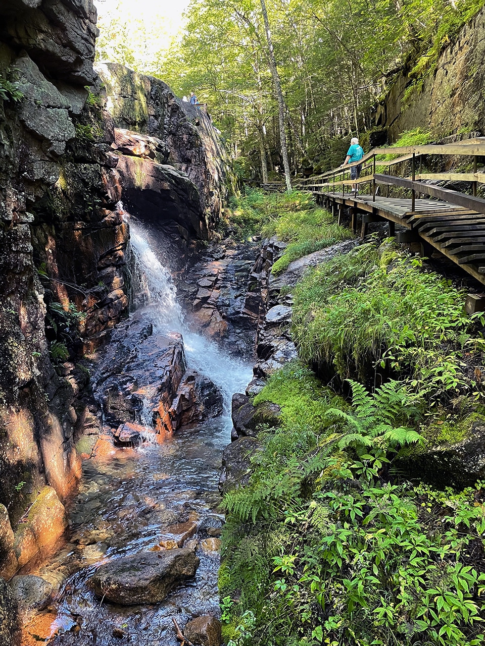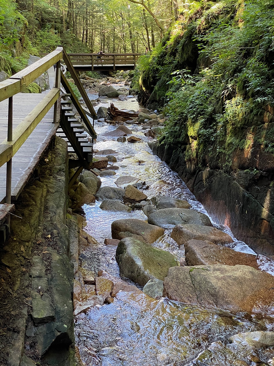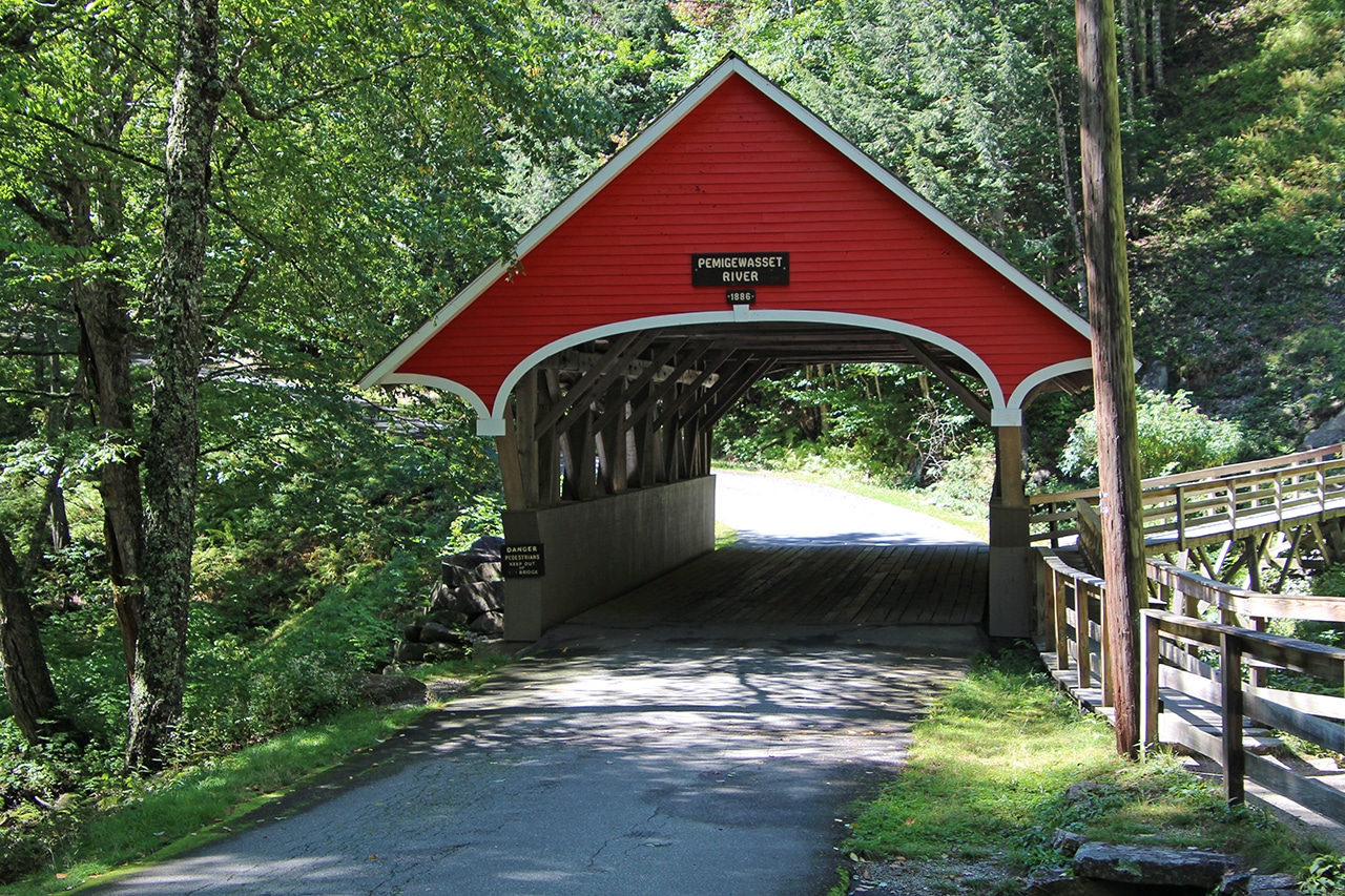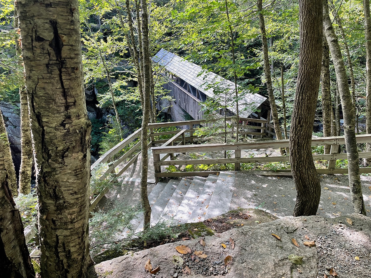 The first stop on the loop is the Pemigewasset River Covered Bridge which was built in 1871. Also called the Flume Bridge, it’s only used by maintenance vehicles and pedestrians. There is a small walkway along one side of the bridge for better views of the river.