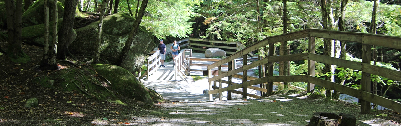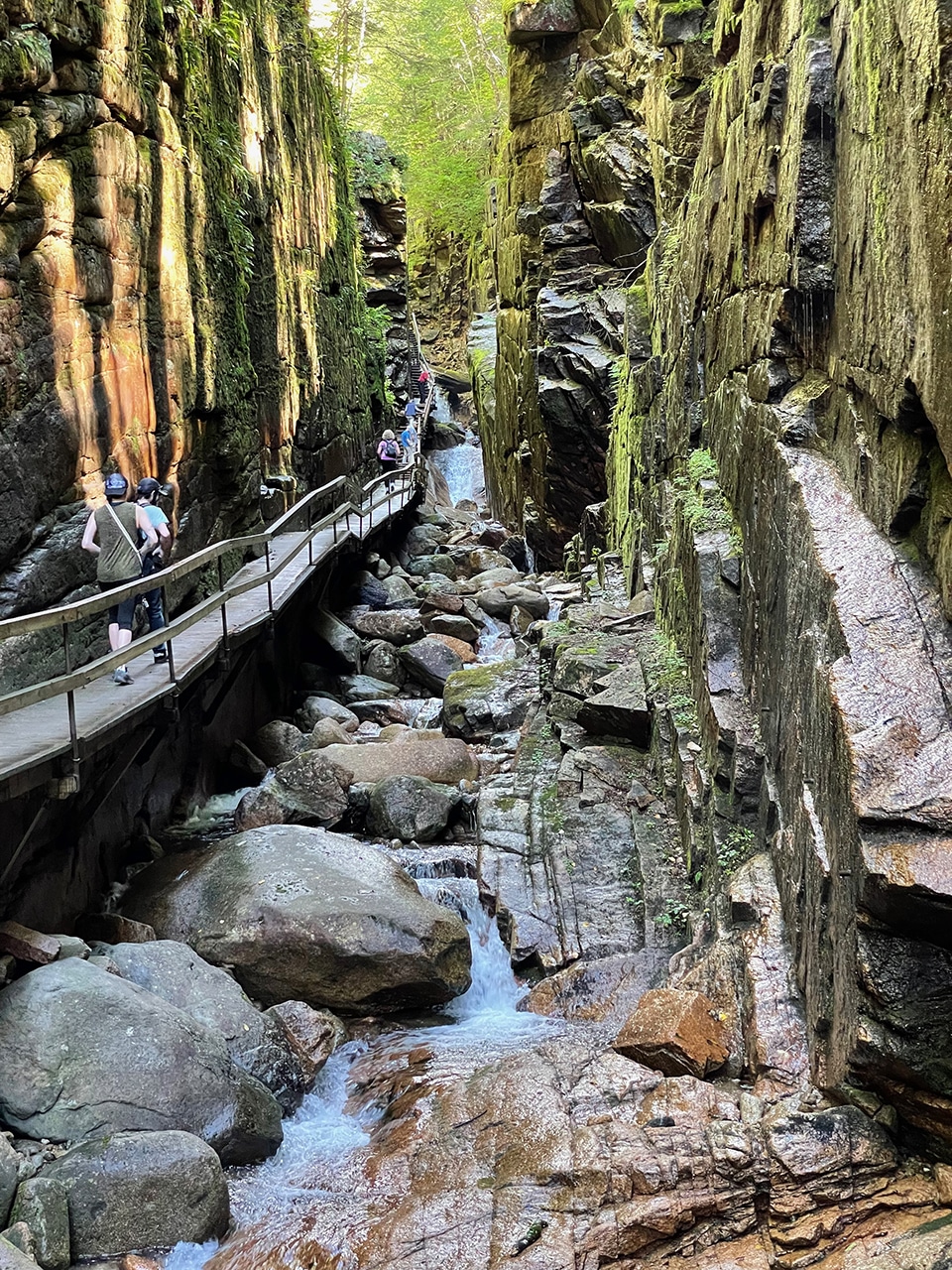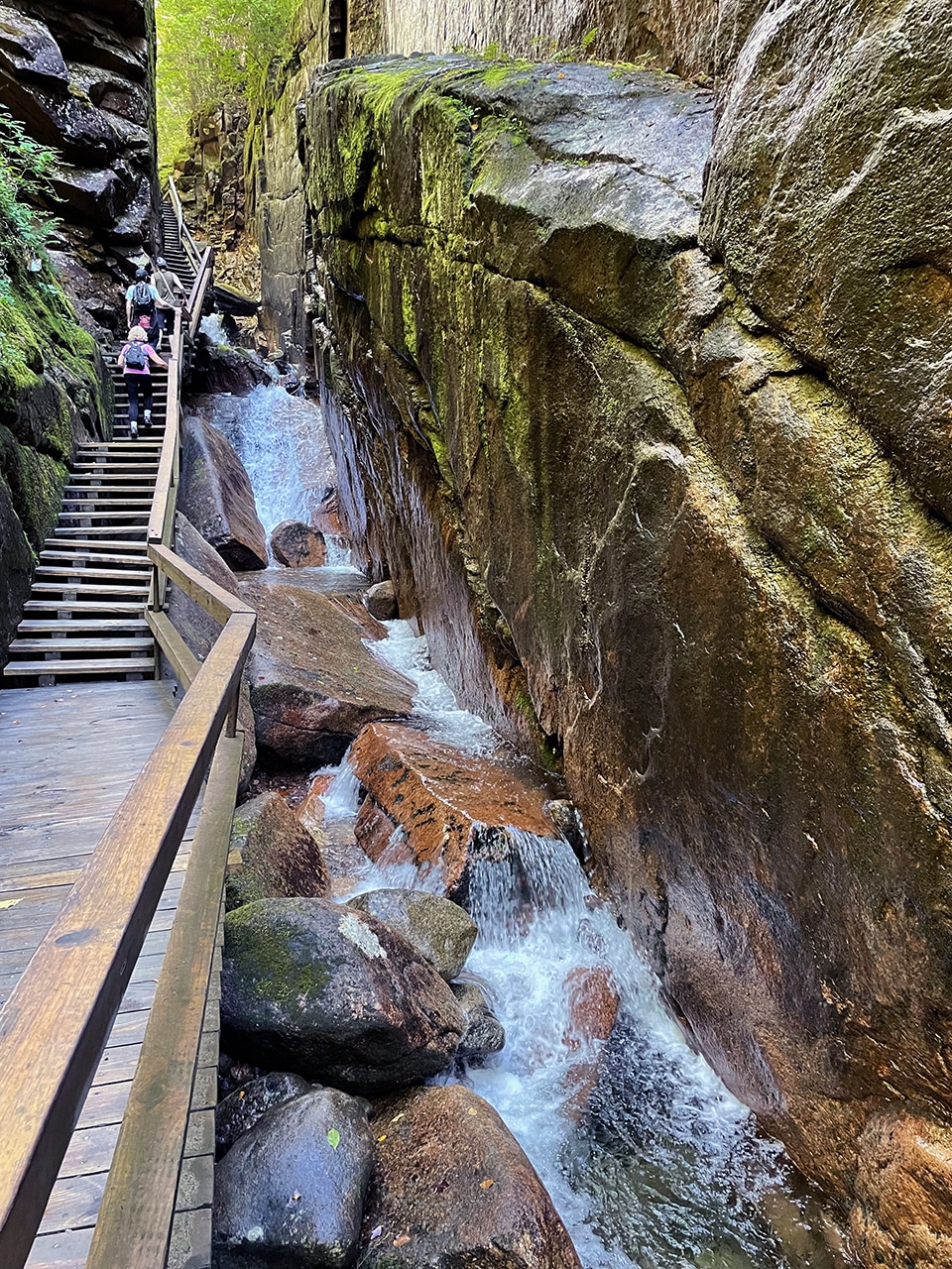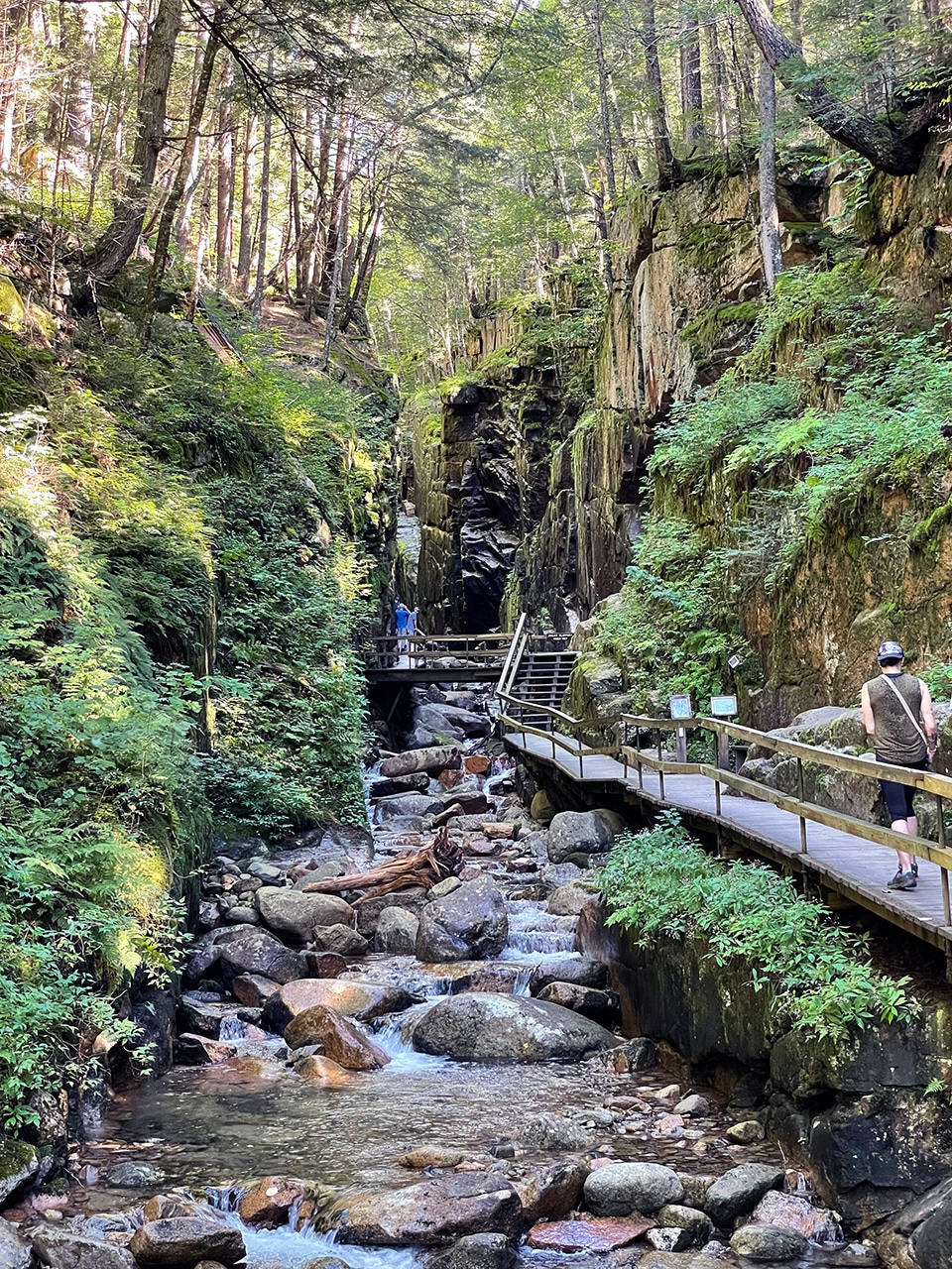 Franconia Notch State Park straddles I93 through Franconia Notch – a mountain pass in the beautiful White Mountains. The park offers great fishing lakes and miles of hiking and biking trails, but no trip to this area would be complete without a stop at the fantastic Flume Gorge.