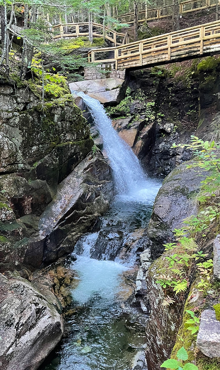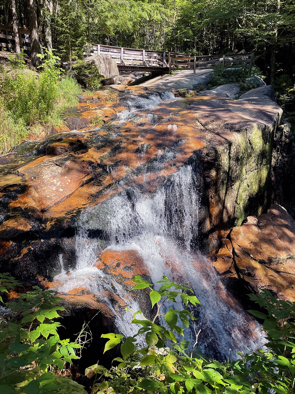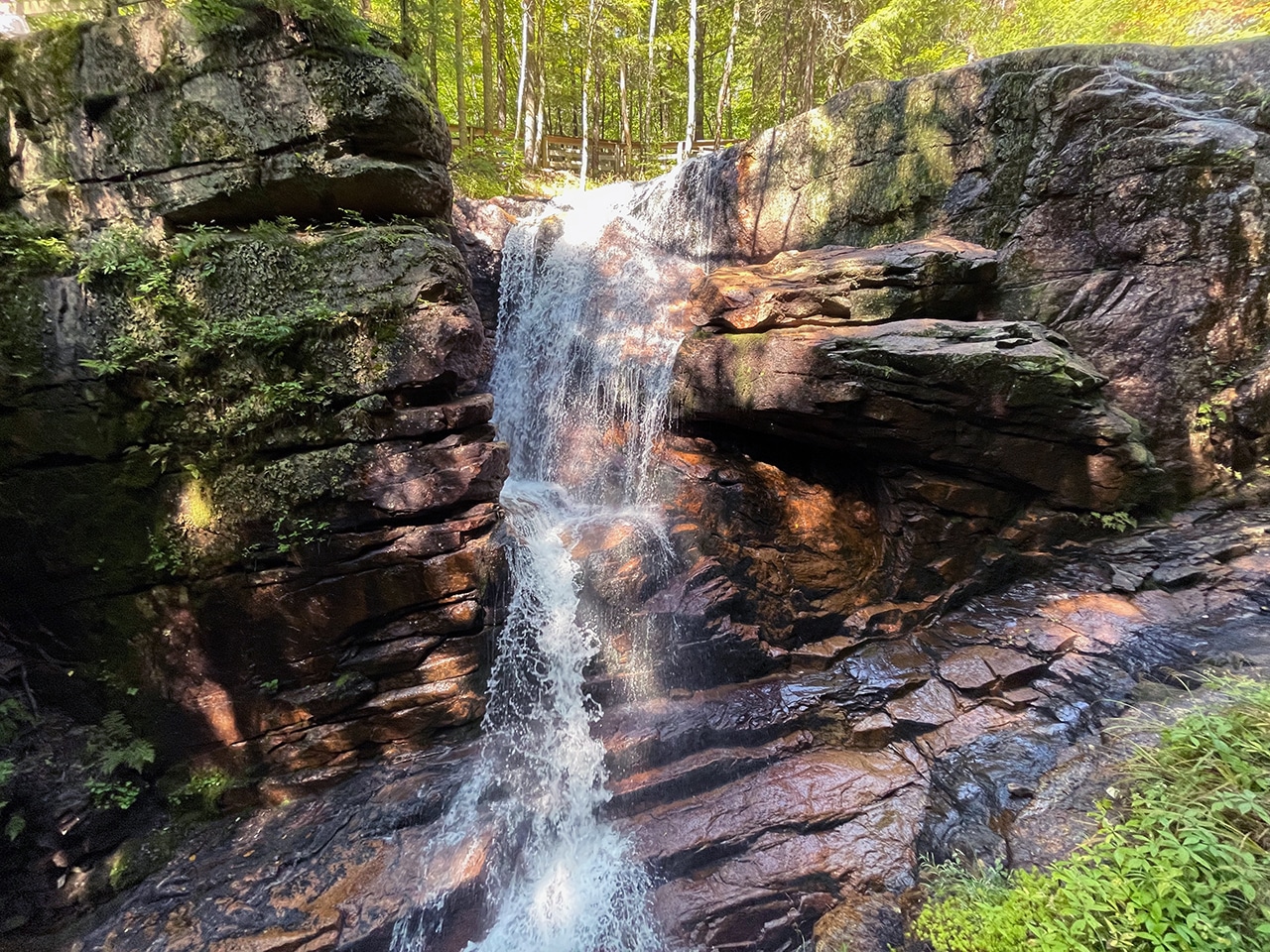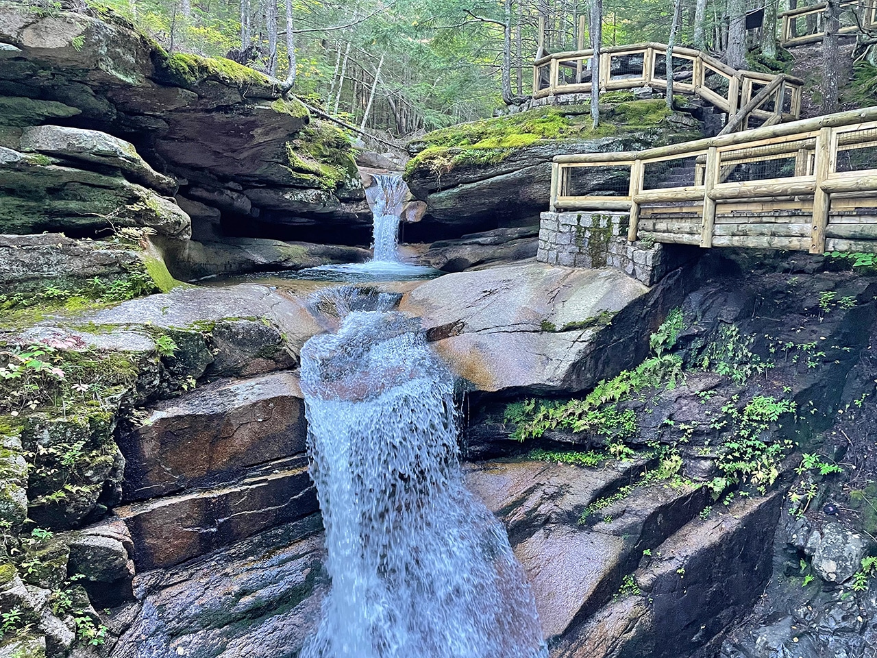 “Sabbaday Falls is one of the most popular locations on the Kancamagus Senic Byway and is accesed via an easy 15 minute walk on an evenly graded and gravel surfaced trail from a paved parking lot, with a stone staircase and gravel walkway directly adjacent to the falls. The falls are a picturesque series of cascades in a narrow flume.” ~ READ MORE