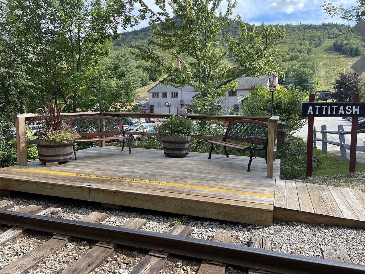 The Conway Scenic Railroad goes right by here on its way to Crawford Notch. When guests at Attitash buy a ticket for that tour, the train makes a special stop here to pick them up, saving a drive into North Conway and back.