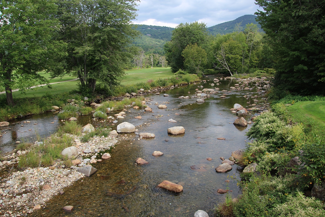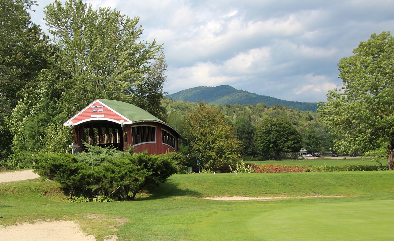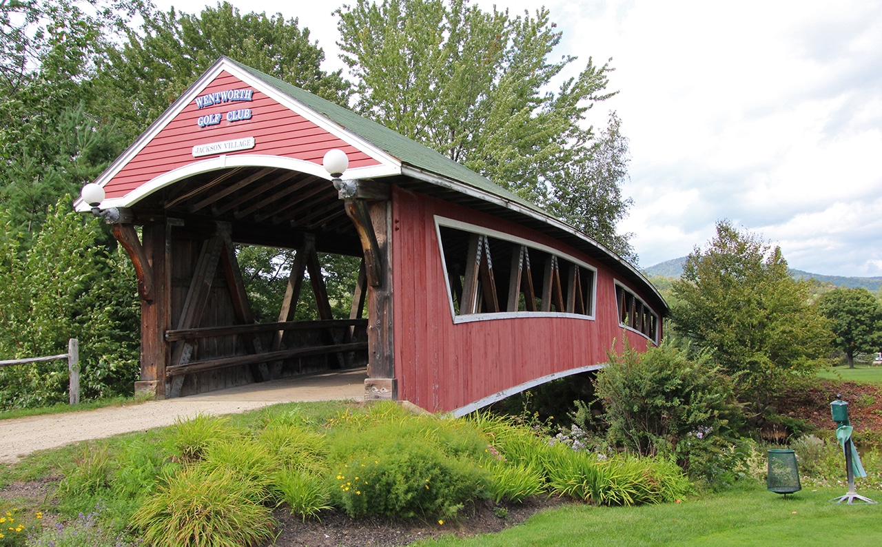 At the Wentworth Golf Club in Jackson Village, this handsome bridge was built to keep golfer’s feet dry! This course offers outstanding views of a beautiful mountain range, along with the Wildcat and Ellis Rivers that meander through the course. Click on the link for more great photos of this bridge, and the course itself – it’s really beautiful!