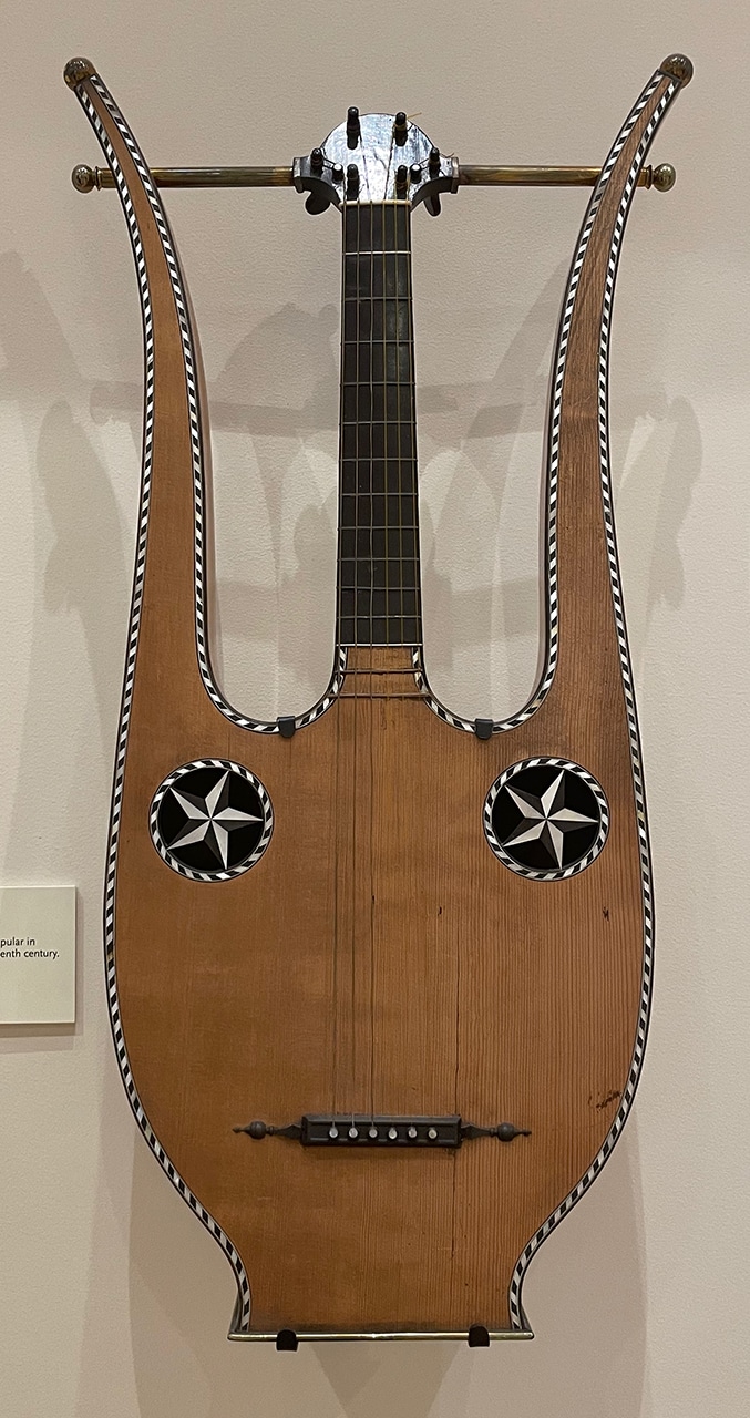 - Lyre guitar France, c. 1815 Lyre-shaped guitars were popular in Parisian salons of the nineteenth century.