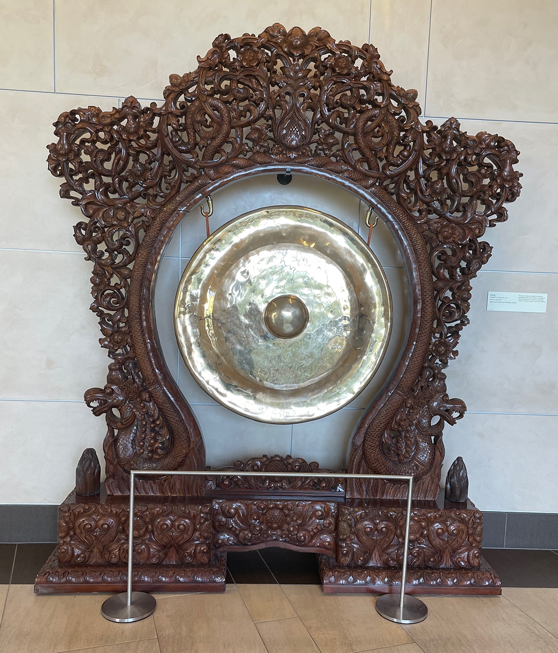 - Gong. Yogyakarta, Indonesia, 2011 Bronze, teakwood. Daliyo Hadi Prayitno and Suhirdian, makers 2011.236.1.1-2. This type of gong is played at opening ceremonies for major events in Indonesia. The stand features common Indonesian motifs: mythical serpents and lotus flowers.