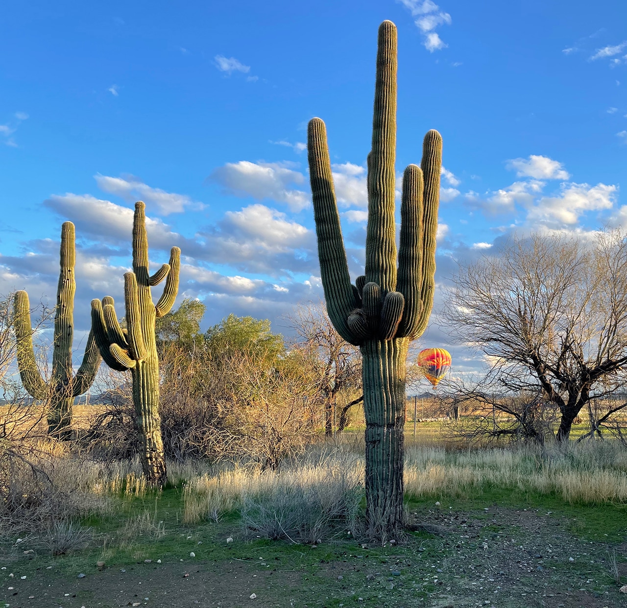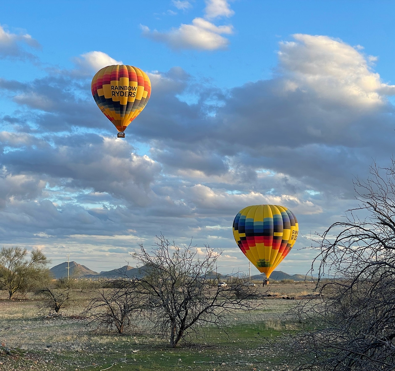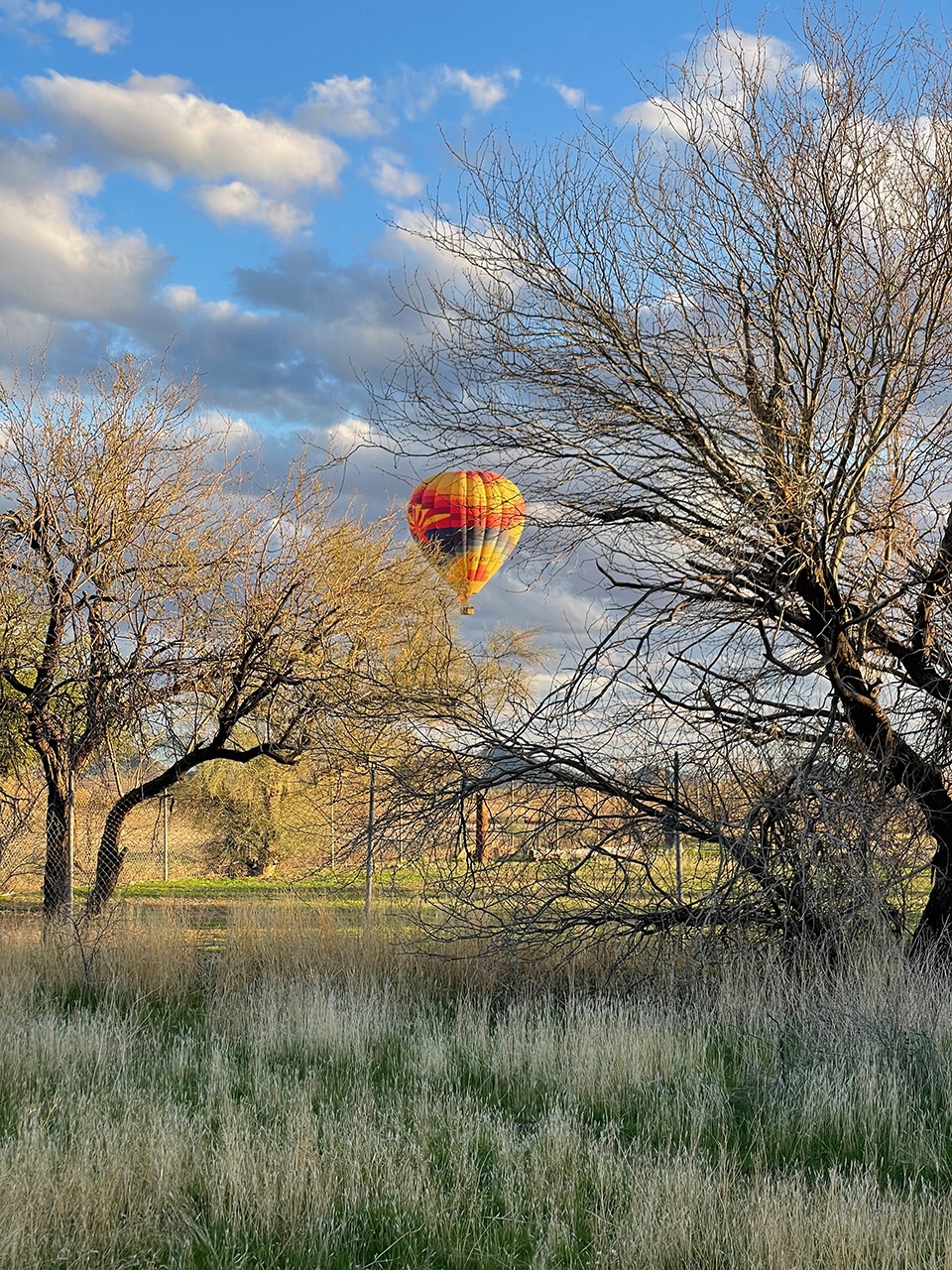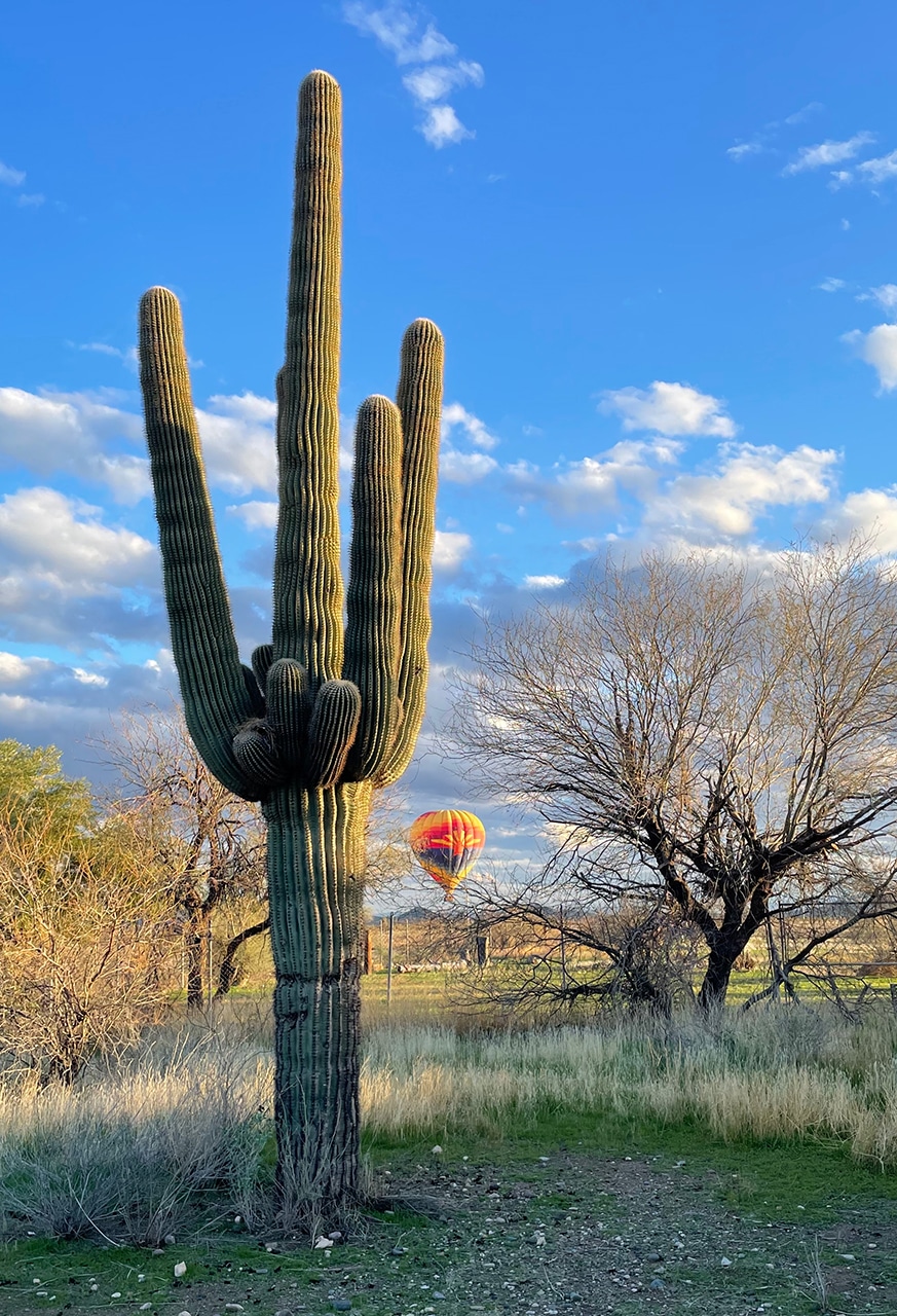 As I’m driving up North Lake Pleasant Parkway, I see a hot-air balloon, and then another. And another! Since it was getting close to sunset and a few more were getting pretty low in the sky not far ahead, I bypassed our condo and hauled ass to The Wild Horse (our favorite burger joint!). I was amazed at my timing, and the beautiful lighting of this fabulous sunset on my last day in Phoenix! Too bad I didn’t have time for one last cheeseburger.