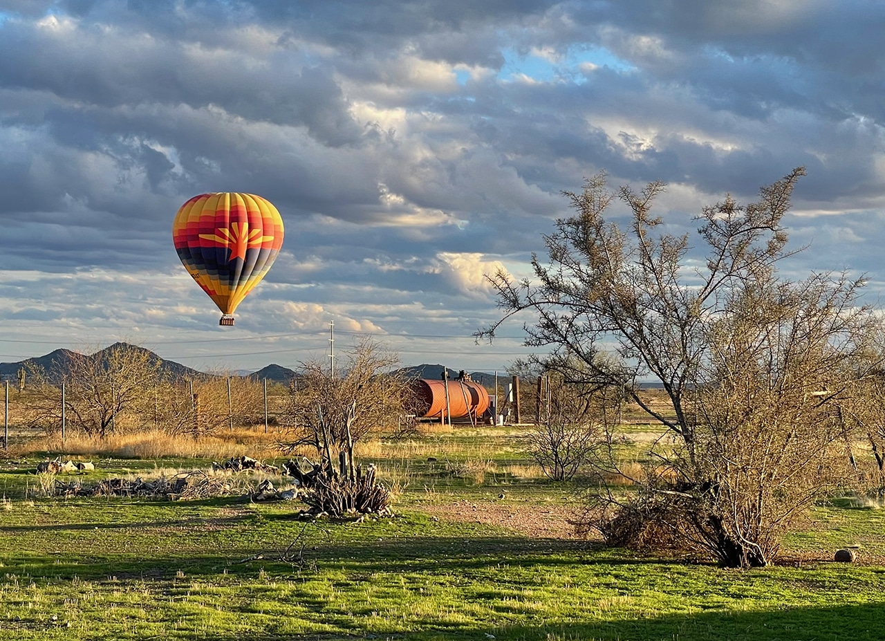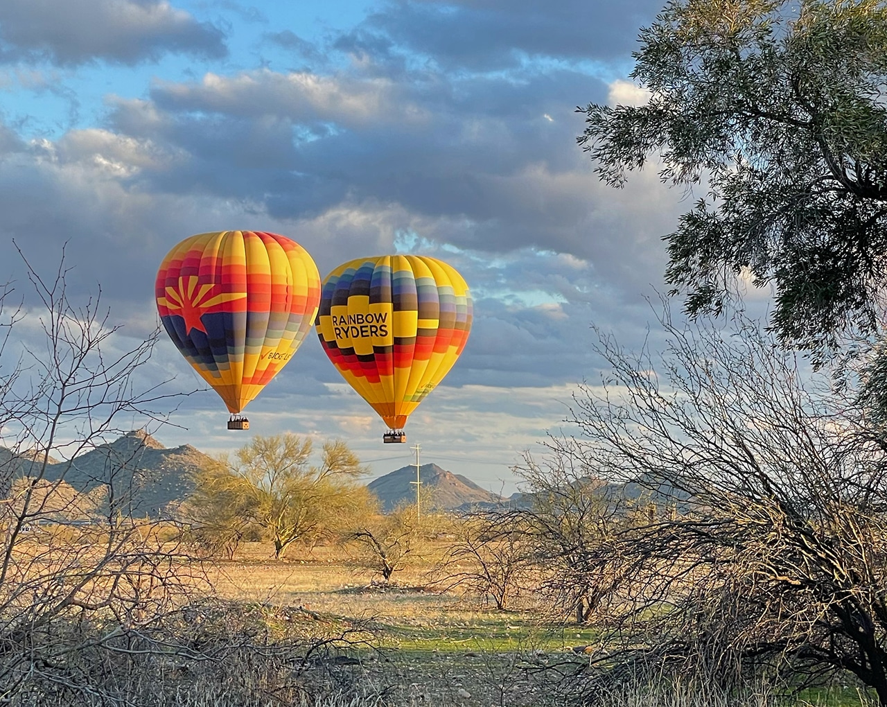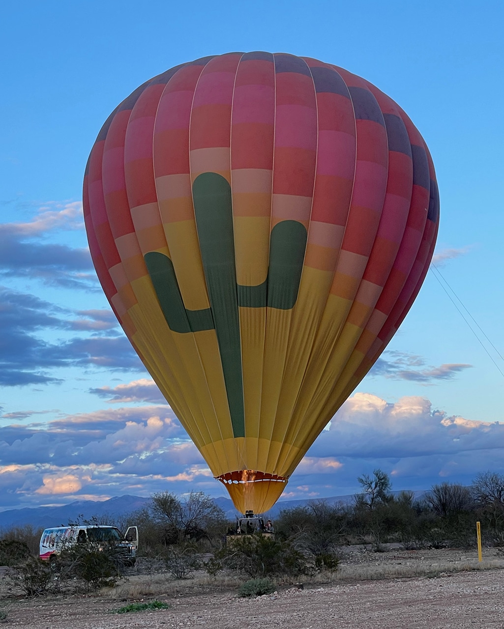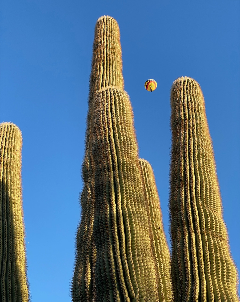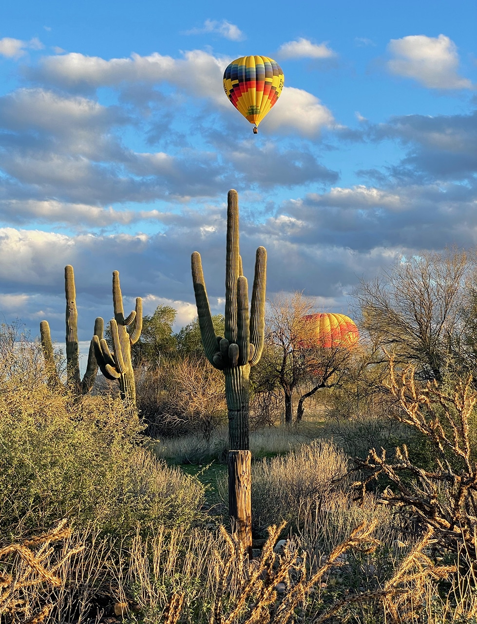 As I’m driving up North Lake Pleasant Parkway, I see a hot-air balloon, and then another. And another! Since it was getting close to sunset and a few more were getting pretty low in the sky not far ahead, I bypassed our condo and hauled ass to The Wild Horse (our favorite burger joint!). I was amazed at my timing, and the beautiful lighting of this fabulous sunset on my last day in Phoenix! Too bad I didn’t have time for one last cheeseburger.