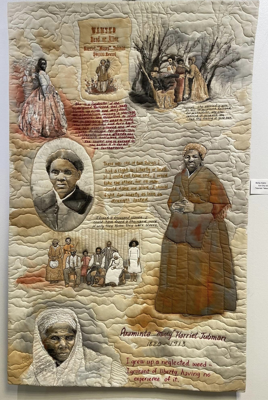 When I realized that all of the photos I took had somehow disappeared, I went looking on the Museum website. There was no trace of that exhibit since a new exhibit has taken its place. Luckily one of the artists came to the rescue! Betty Hahn has a LOT (maybe all?) of the pieces from the exhibit on her Facebook page. Even if you’re not a fan of quilting, you will LOVE these. Here is a link to just Betty Hahn’s Fiberart website.