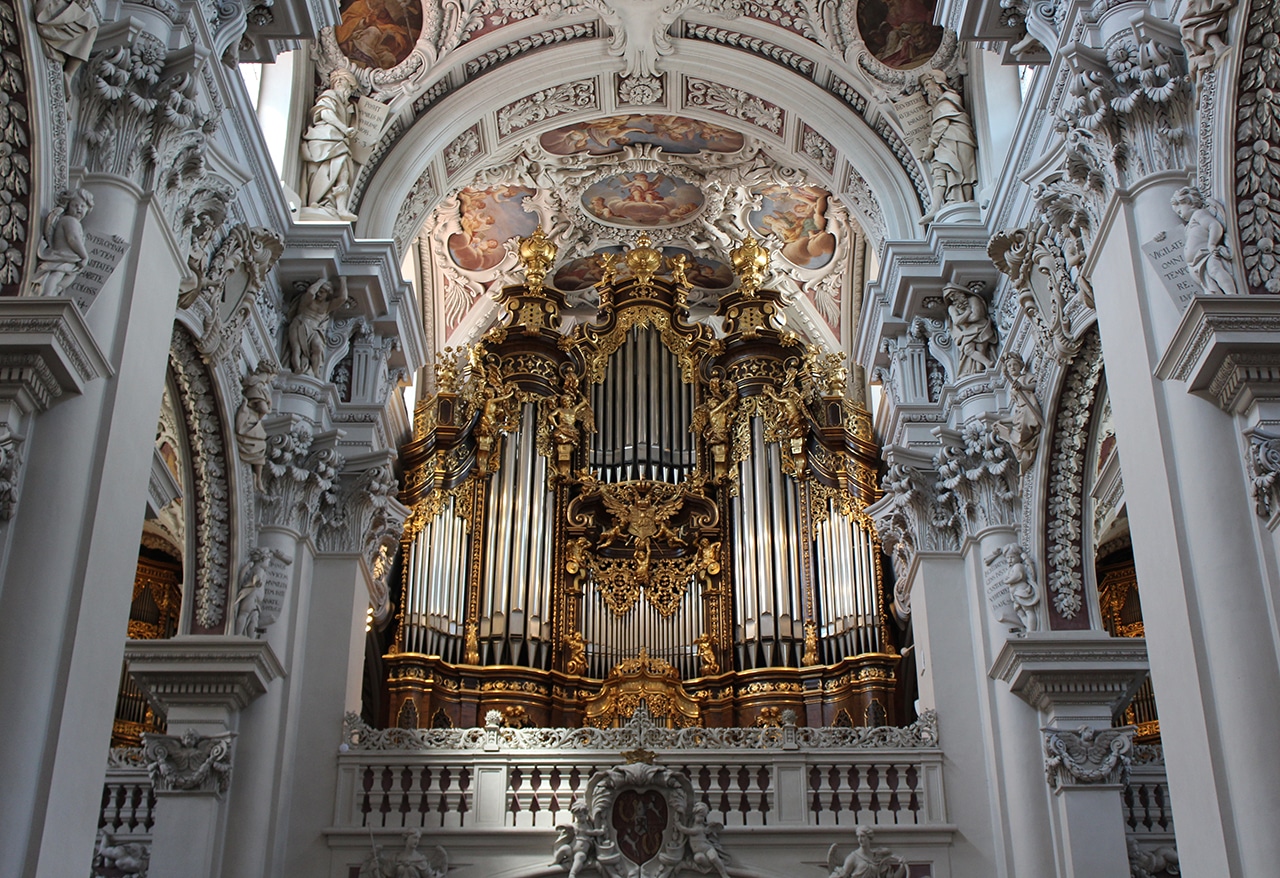- Europe’s largest cathedral pipe organ, with 17,974 pipes and 326 ranks, at St. Stephen’s Cathedral in Passau, Germany.