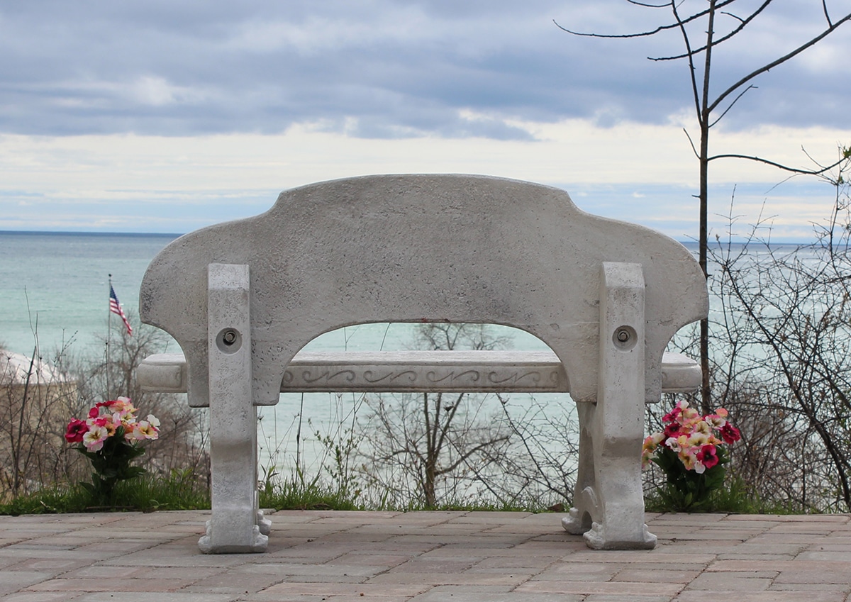 As you can see from the photos, there are some nice chairs where you can sit and relax for a while and enjoy the view. Sitting on the concrete bench (below) will have you feeling like your feet are dangling over the edge of the bluff! For you history buffs out there, be sure to read the great informational board that’s next to that bench. Titled “The Lights of Port Washington”, it contains some pictures of the original buildings, a timeline and some history of the light keepers who lived here.