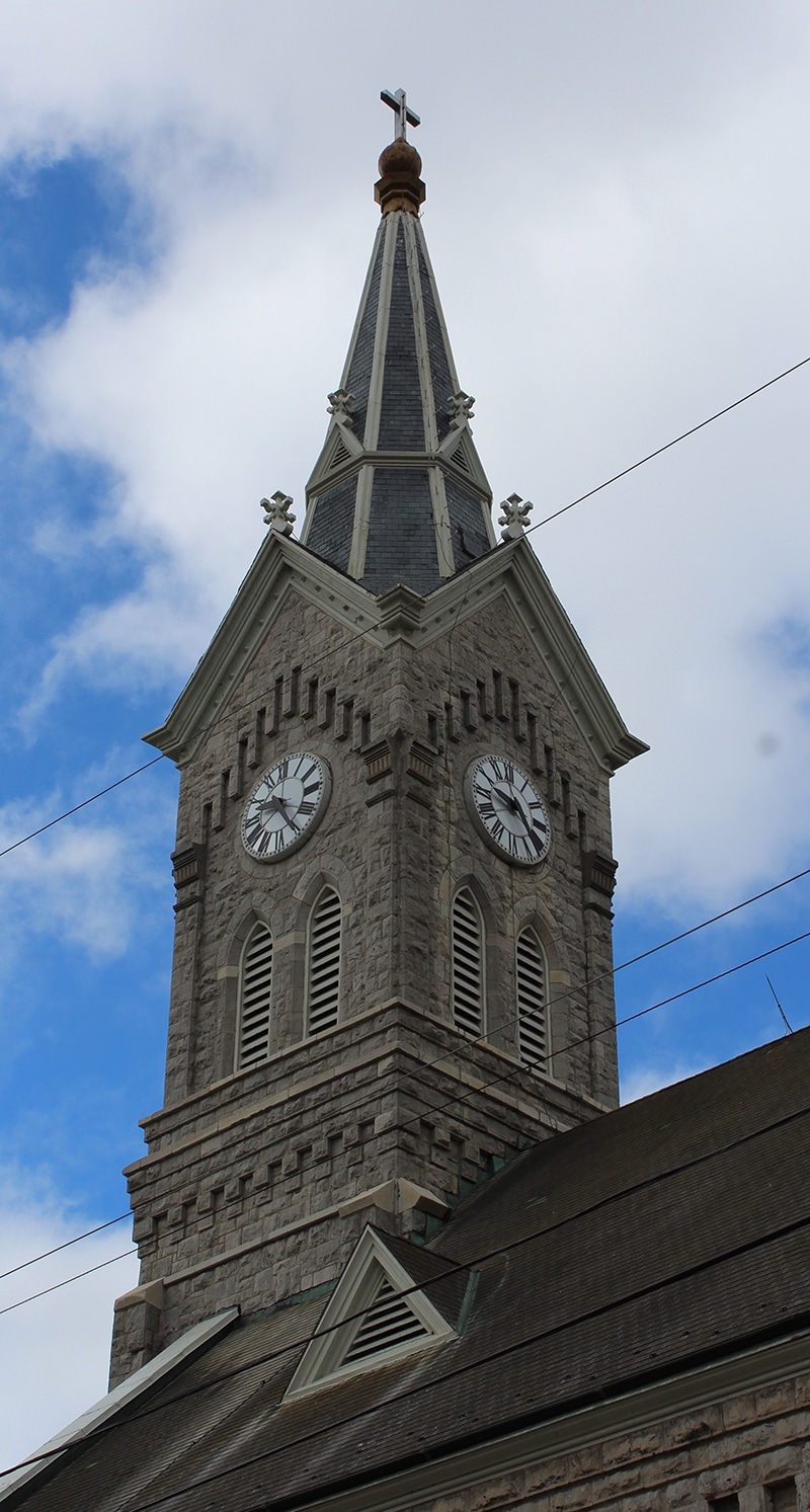 “October 1, 1881- Very Reverend L. Batz, Vicar General, spent Sunday in the village. His special mission was in the interest of St. Mary’s Church. The object being the building of a new edifice, which is much needed to accommodate the large and constantly increasing congregation. He met with satisfactory encouragement, and the effort to erect a new building will be pushed with vigor. Fr. Willmes, the pastor of the church, will at once begin the work of raising the funds needed by subscription, as it is the intention to erect a building, which will be an ornament to the place, and the pride of the whole county. The style of architecture will be Gothic, and in all its departments complete tasteful, capacious, the size will be 64 by 135 feet, the spire looming skyward 160 feet.” – READ MORE history of St. Mary’s church