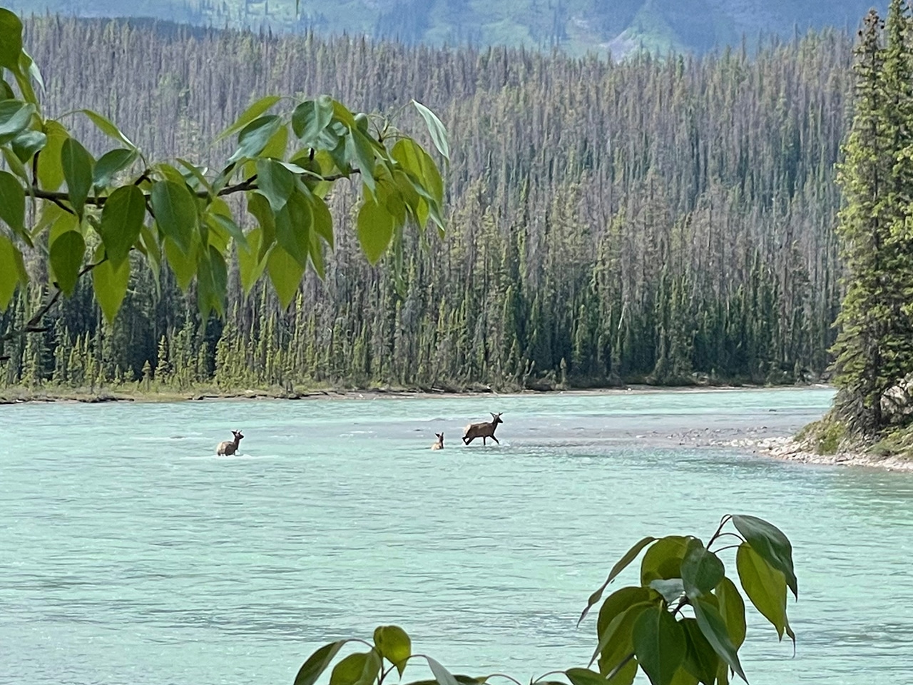 At first glance, Jim thought our first wildlife of the day was going to be moose, but three elk crossing the river was pretty great too, and have you ever seen a bigger raven?