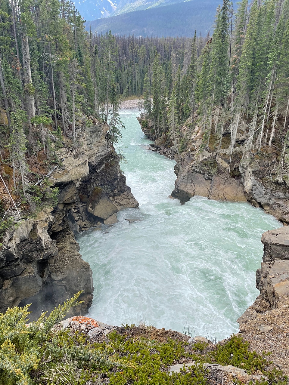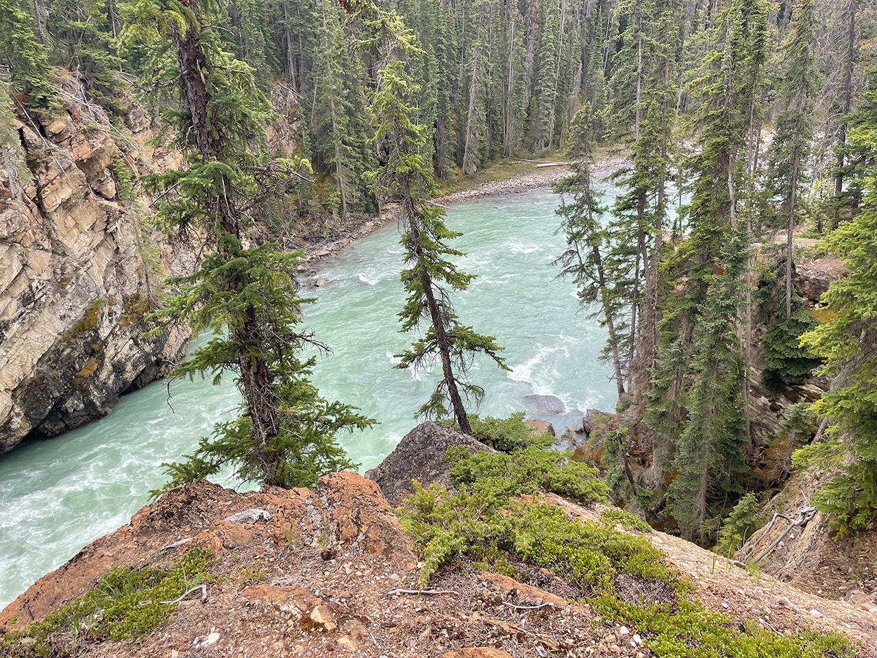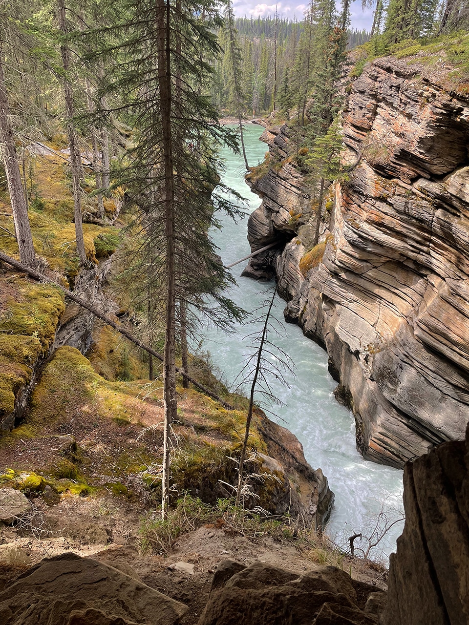 As the water made its way out of the canyon and leveled out, I decided to head back. Going back up was more challenging, but I was so excited about the three-in-one falls at Sunwapta that I didn’t even mind!