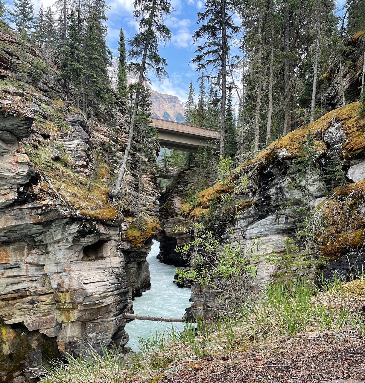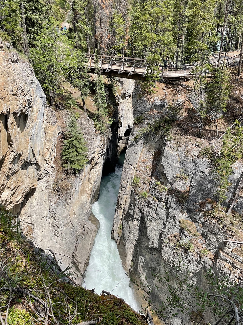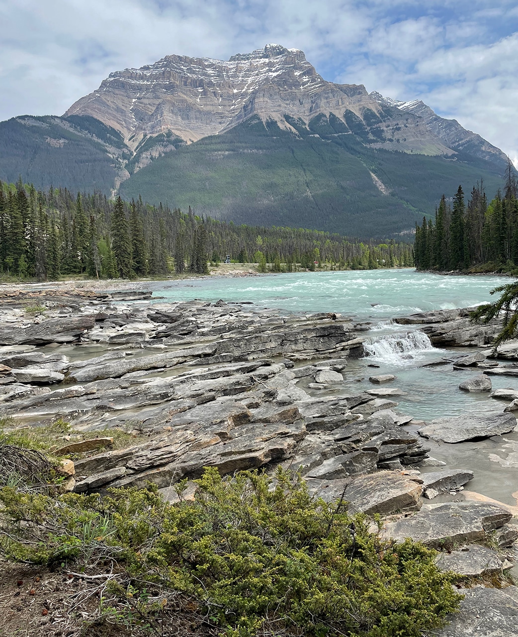 As the water made its way out of the canyon and leveled out, I decided to head back. Going back up was more challenging, but I was so excited about the three-in-one falls at Sunwapta that I didn’t even mind!