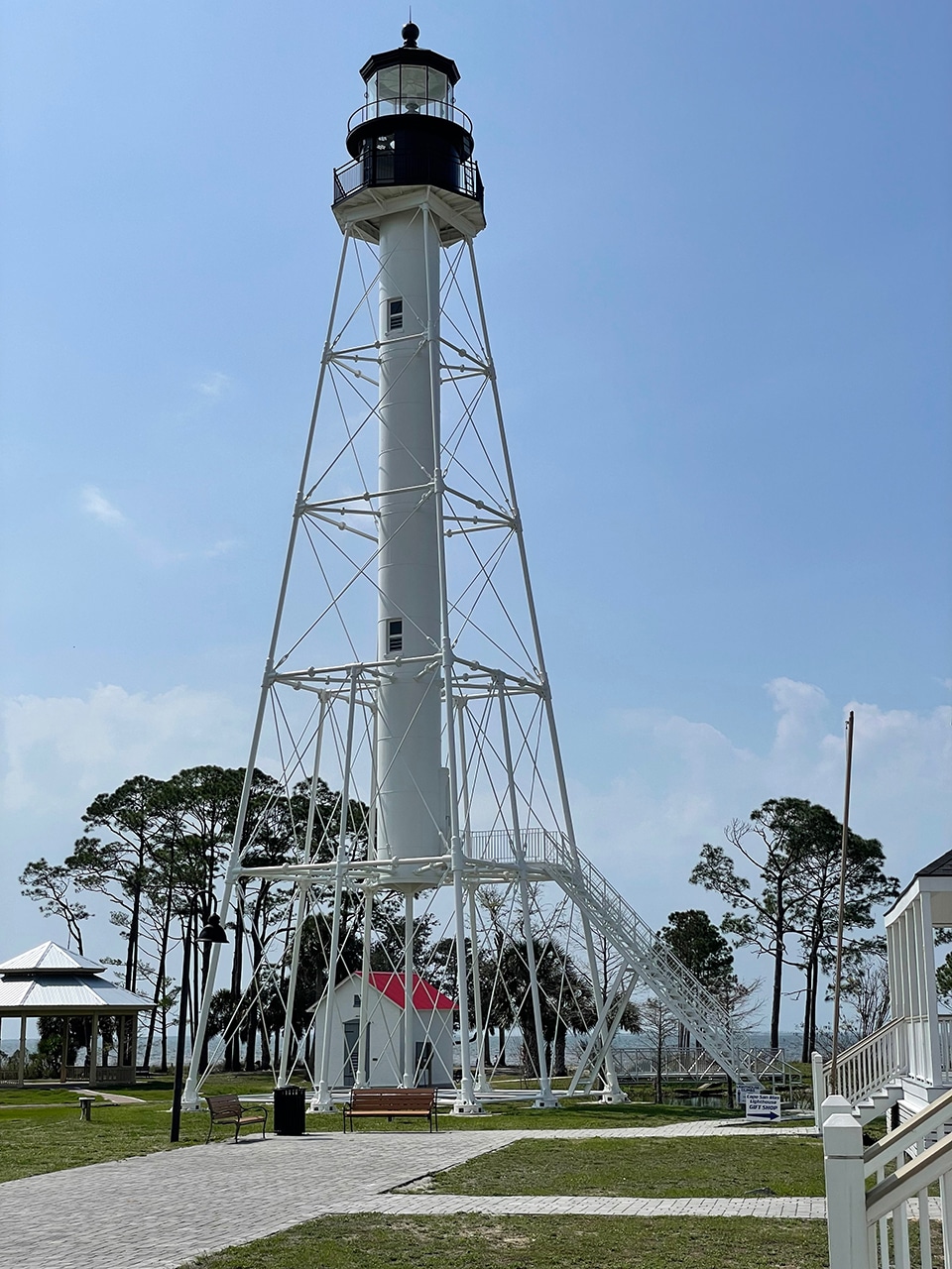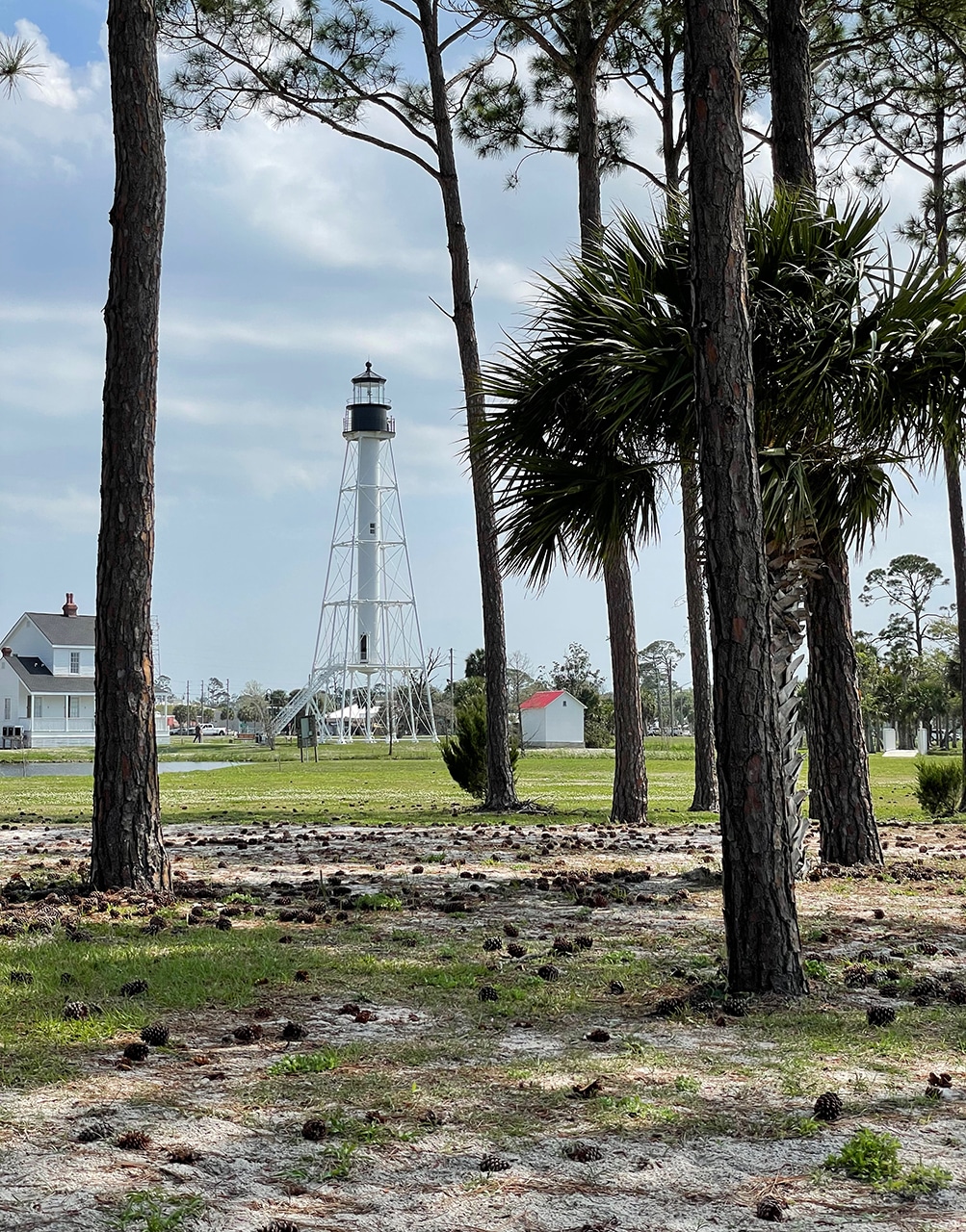 This is a quick post about a fascinating lighthouse that’s been through a lot in its 175-year lifetime. On our second pass through Port St. Joe, Florida, we were able to get inside the gift shop to read about its rebuilds, redesigns and finally its relocation from the hurricane-prone Cape San Blas.