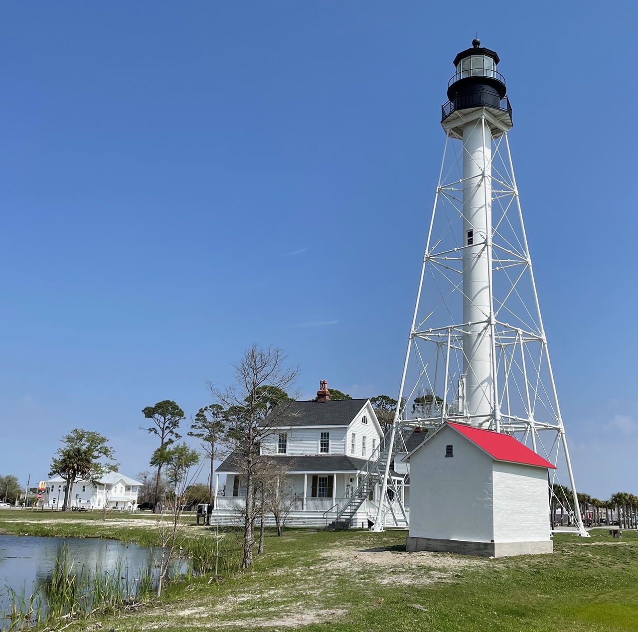 This morning we left the St. Marks area for Panama City Beach. We made a stop in Port St. Joe on our way through three years ago (The Scenic Route), but the weather was dismal and the lighthouse museum and gift shop were closed. This time since the quaint little town was right along our route again and it was a perfect day in early March, we decided to give it another try. It’s pretty easy to tell which photos were taken on which trip!