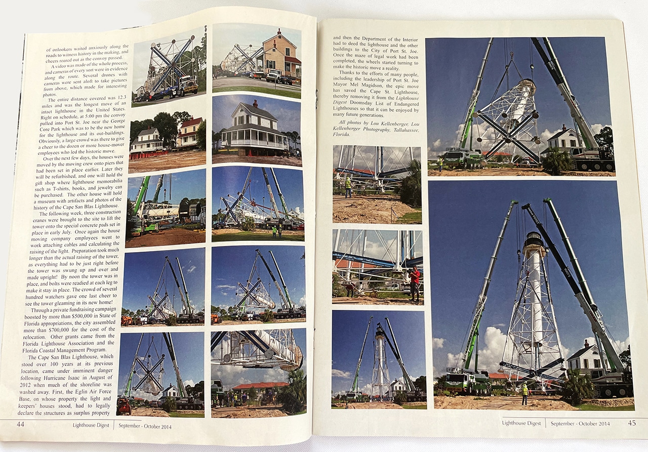 Interestingly, there were those who felt that the light should stay on the Cape, but it was the city of Port St. Joe, Florida that managed to raise the money through various grants to move the light to a public park in Port St. Joe.” ~ READ MORE about the move at Lighthouse Digest | September, October 2014 (or on the pages below)