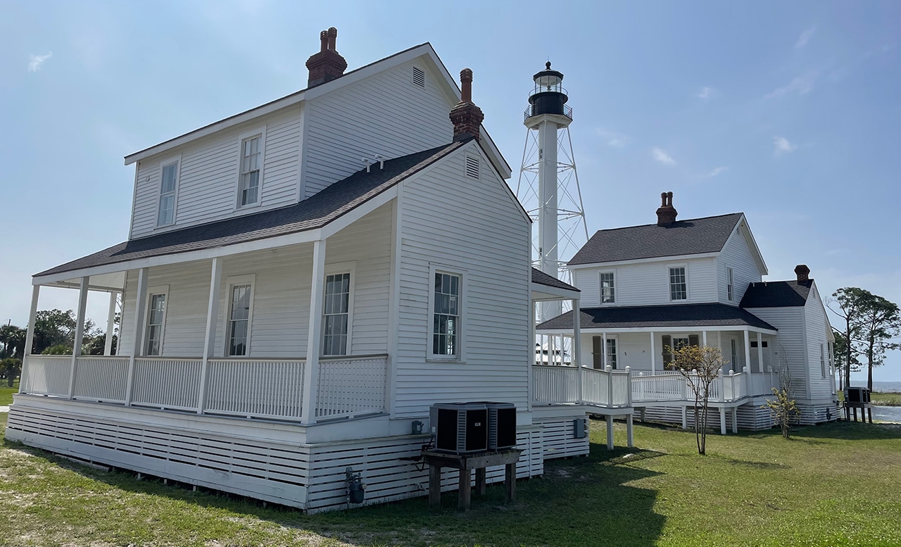 •1918 the tower was moved one quarter mile inland and lit in 1919. •1952 the Coast Guard assumed custody of approximately one-third of the peninsula. •1972 the lighthouse was automated, keeper’s quarters left unattended to deteriorate. •1996 the lighthouse was deactivated, and two years later more hurricane damage. •1999 the U.S. Air Force assumes responsibility for the keeper’s dwellings which were moved near the tower. Both dwellings were eventually refurbished for use by USAF. •2012 the Cape San Blas Lighthouse District was closed due to the continued rapid erosion of the coast. •2012 USAF moved the two Keepers’ Quarters and the Oil Shed inland to prevent imminent destruction.